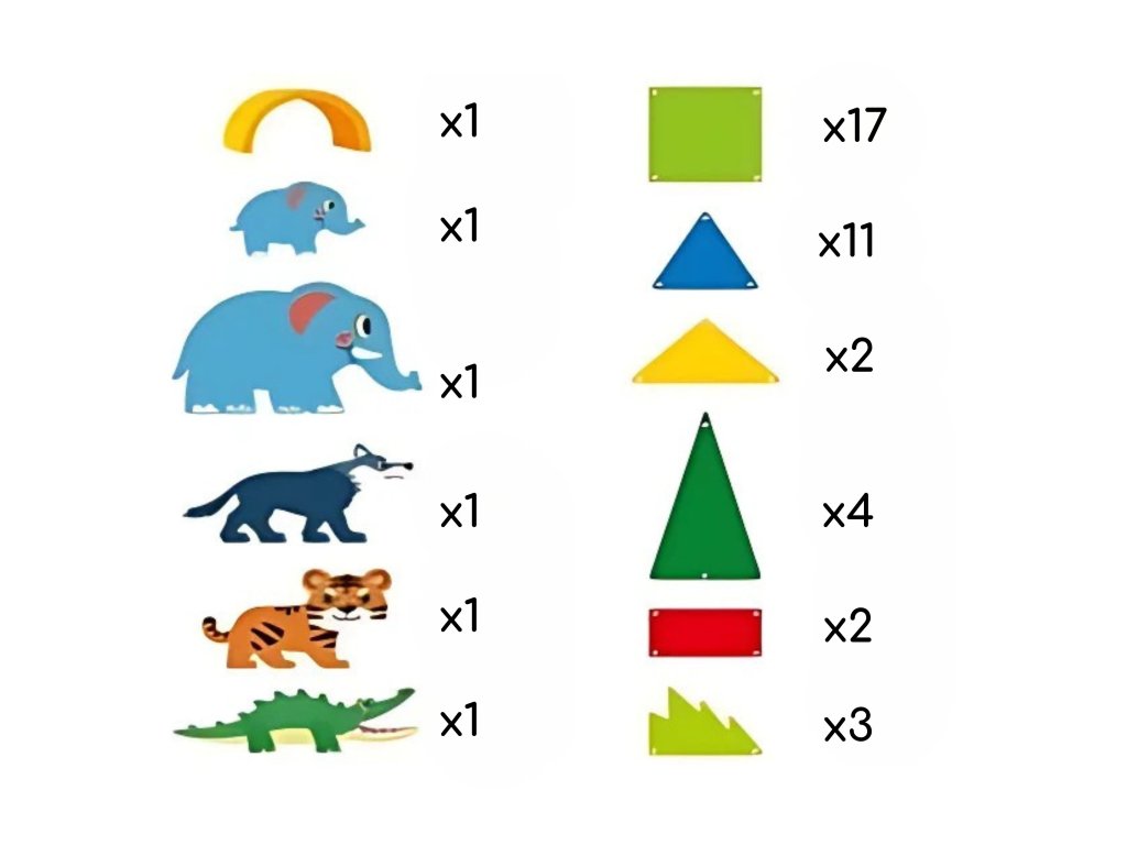 - - Zahrnuté45 prvkovvrátane magnetických dlaždíc a figúrok zvierat.