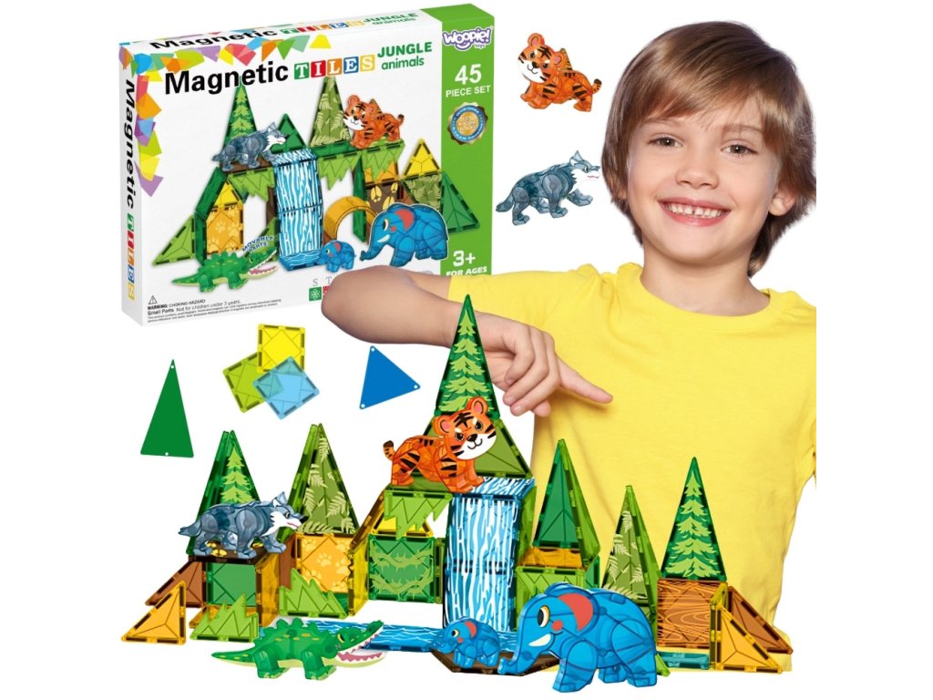 WOOPIE Magnetické 3D stavebnice Zvieratá v džungli Vzdelávacia sada 45el.