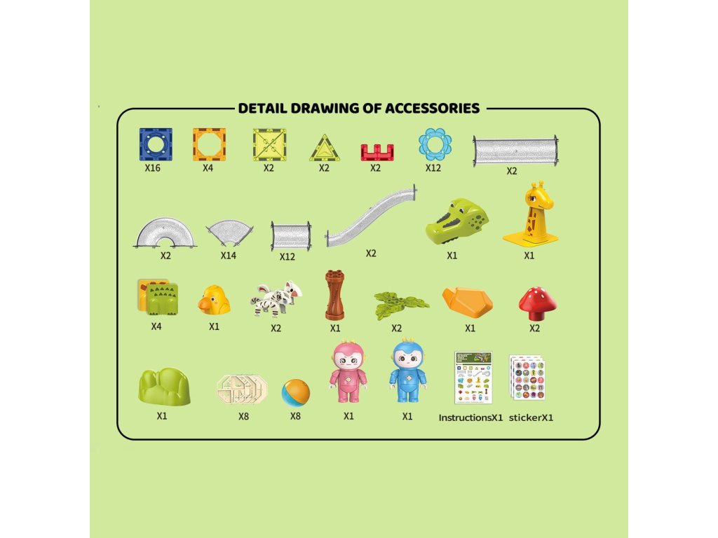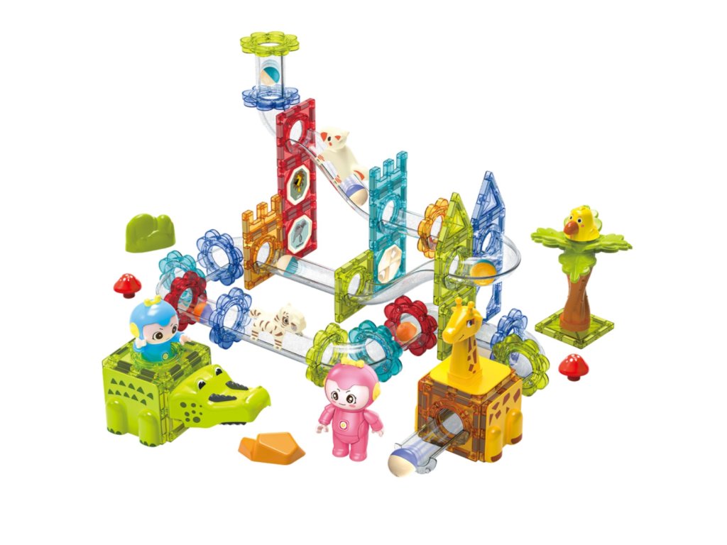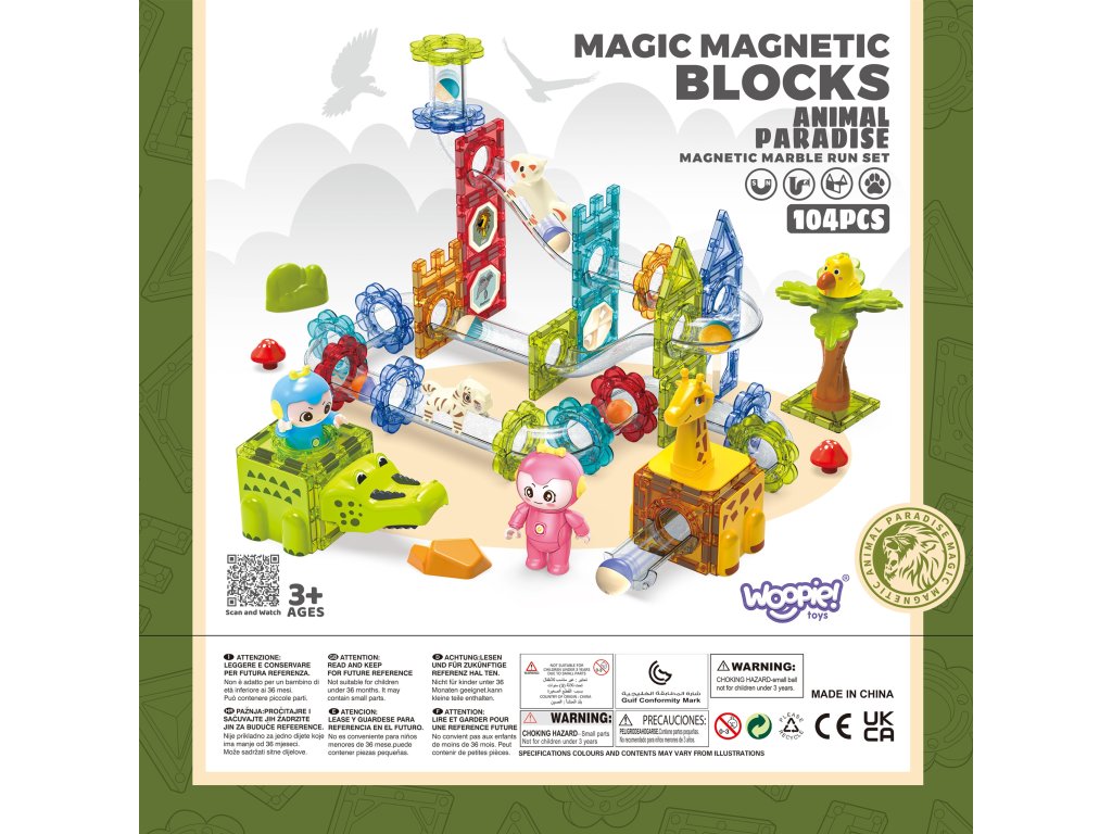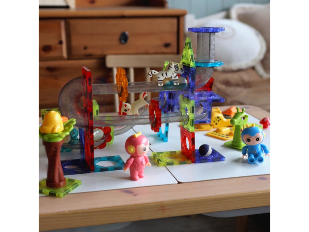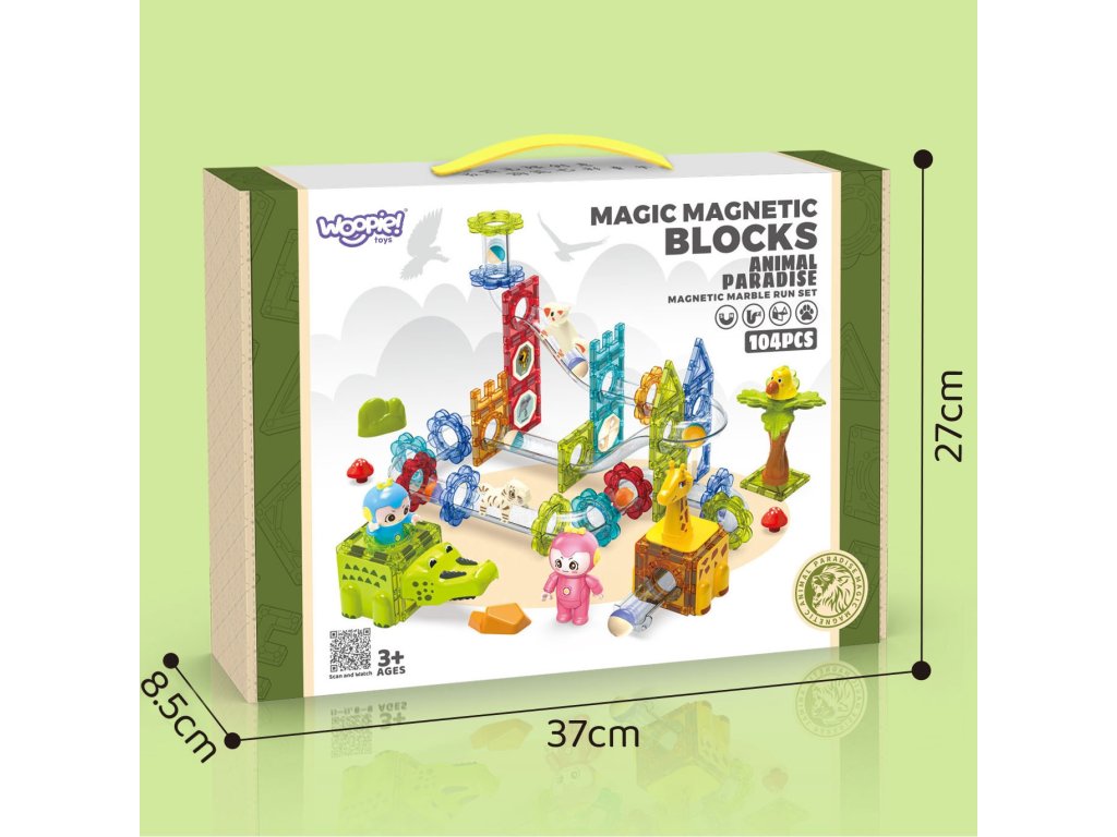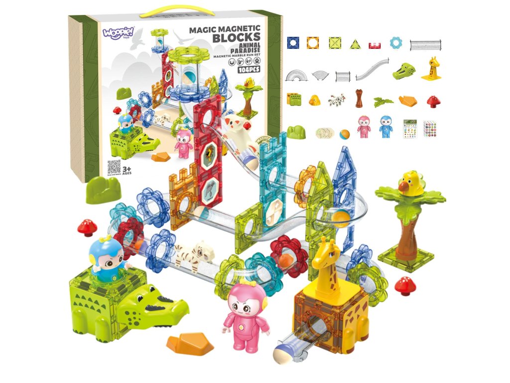 WOOPIE Magnetické bloky Guľôčková dráha Animal Paradise 104 ks