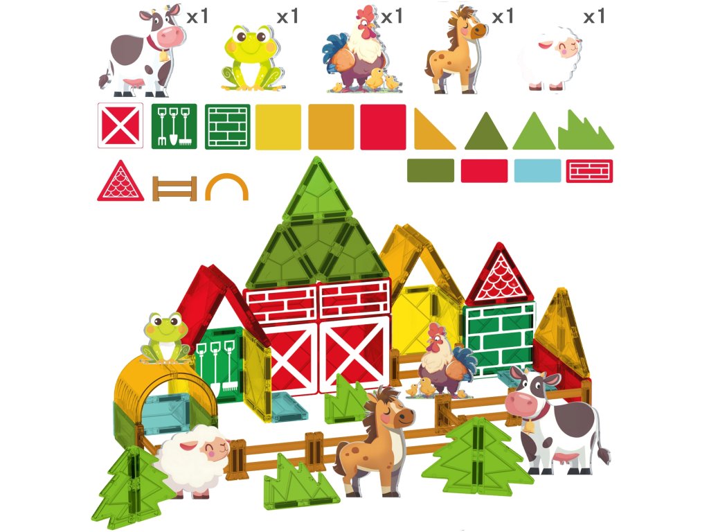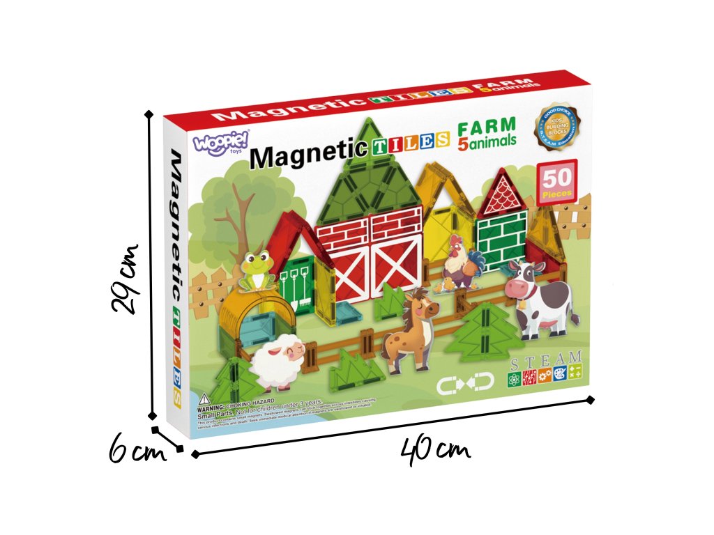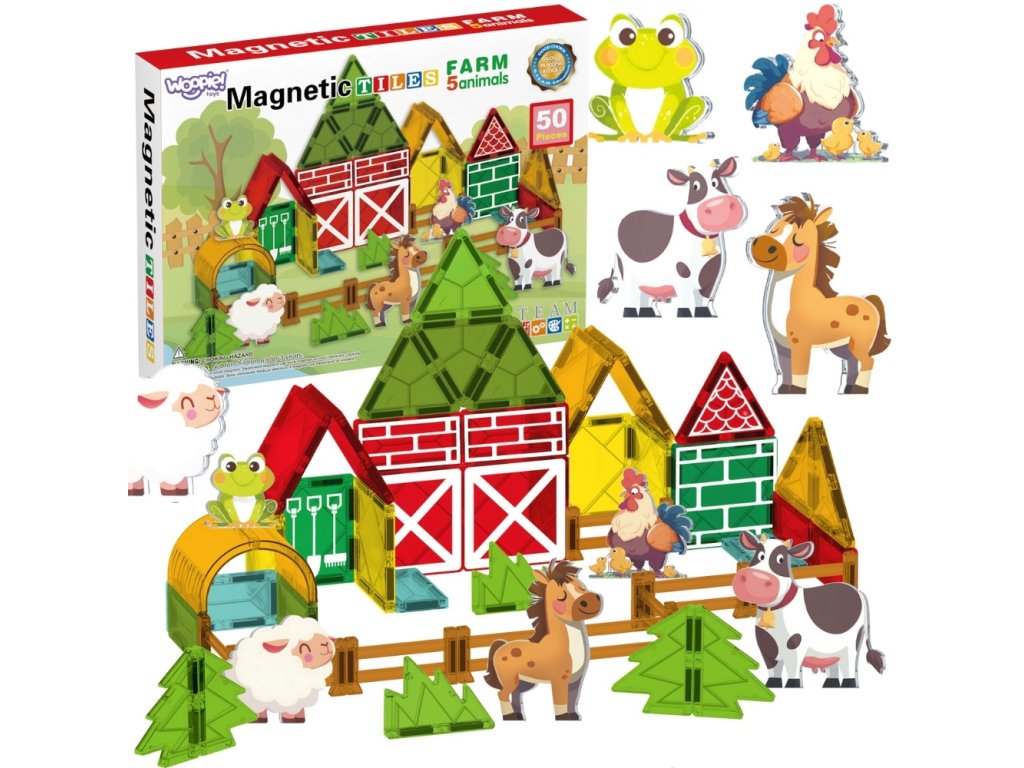 Sada magnetických stavebníc odWoopie je jedinečná hračka, ktorá umožní vášmu dieťaťu postaviť si vlastnú farmu Deti môžu stavať stodoly, ohrady pre zvieratá, stavať silá a iné hospodárske budovy a experimentovať s rôznymi konfiguráciami. Vďaka magnetickým spojom je stavanie vlastnej farmy jednoduché a zábavné a každá budova zostáva počas hry stabilná.