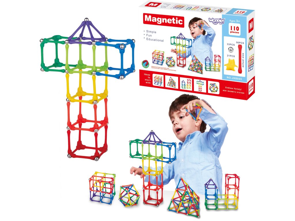 Sada magnetických tehličiek od značkyWOOPIE odkazyzábava iučenie! Stačí, aby mladý konštruktérsa pripojí navzájom a začať vytvárať nápaditébudovy a mnoho ďalších usporiadaní, napr. geometrické útvary alebo písmená či čísla, alebo dokonca matematické operácie! Jediným obmedzením jepredstavivosť. Súprava obsahuje110 prvkova farebné inšpirácie s návodom na skladaniepomáhať batoľaťu.Bloková konštrukcia vyvíjau dieťaťakreativita, schopnostimanuál ("malé motorické zručnosti"),priestorová predstavivosť akoncentrácia.