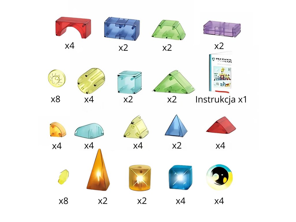 - - Rôzne tvary: štvorce, trojuholníky, obdĺžniky, ako aj prvky na stavbu kruhov a zložitejších štruktúr