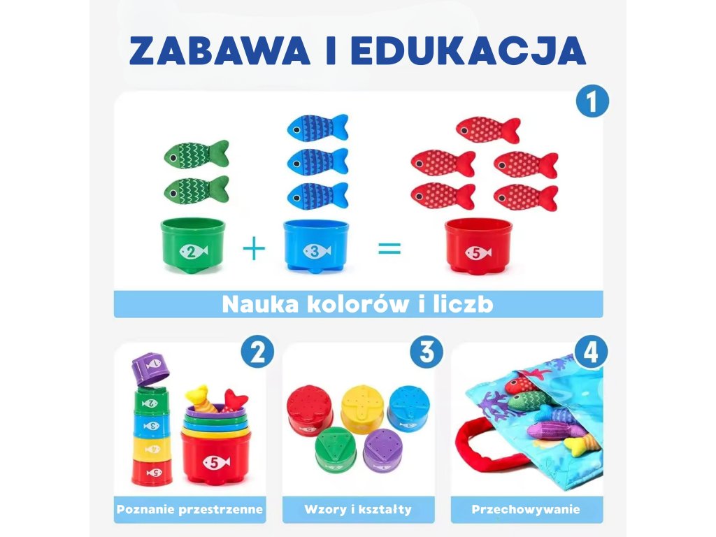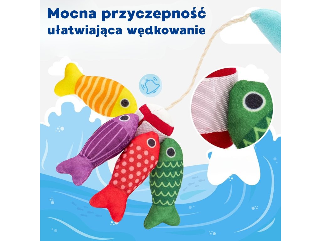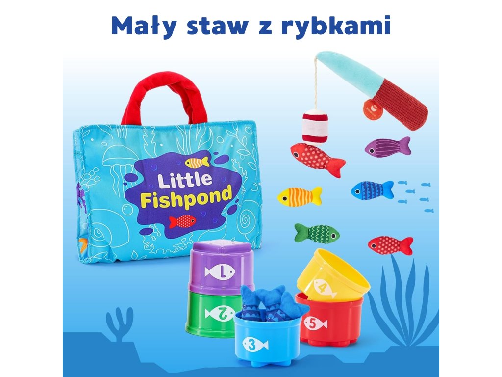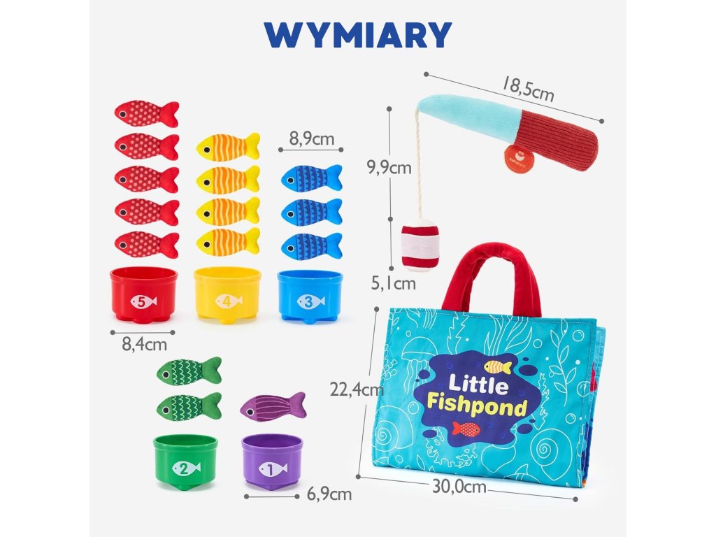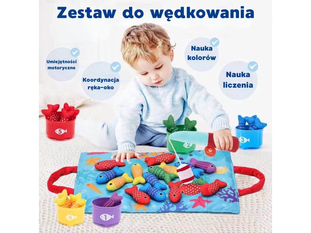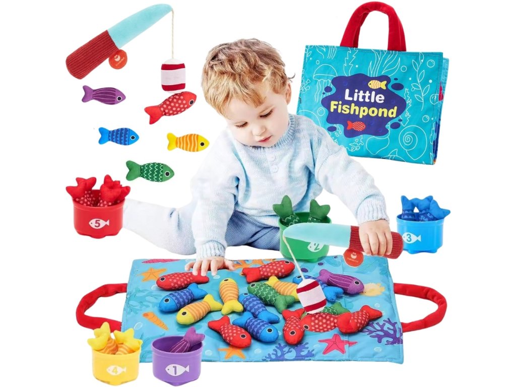 Súprava malého rybára odWOOPIE je tomäkká, bezpečná a pútavá súprava rybársky prút pre batoľatá od 6 mesiacov. Farebná plyšová ryba, ľahký rybársky prút s návnada suchý zipsočíslované poháre askladacia taška - rohož premení akýkoľvek priestor na mini krajinu na hranie. Dieťa chytá ryby, triedi ich do správnych pohárov aučí sa farby, počítanie a vzory, zároveňcvičenie rúk a koordinácie.