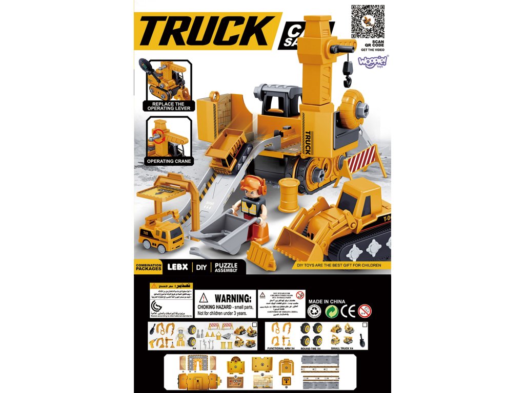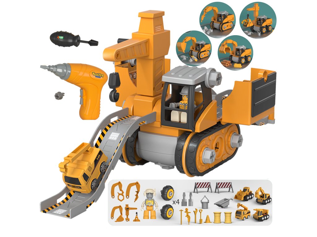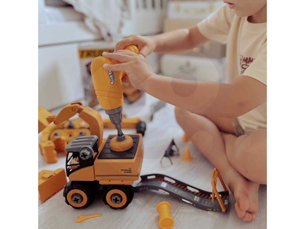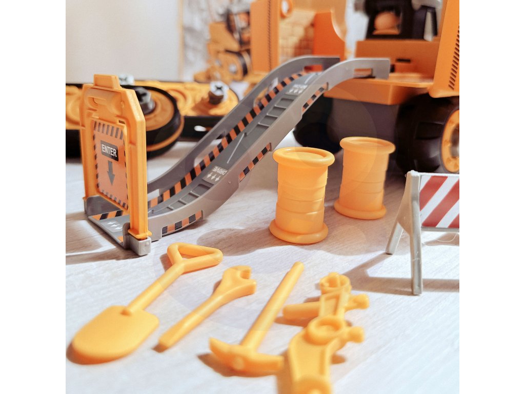 Mega stavenisko 5v1od značky WOOPIEje kompletná sada pre každého milovníka extrémnych vozidiel! Zábava je vna zvrat pomocou vŕtačky alebo skrutkovača z jedného z5 typov vozidiel a na zábavu pri stavaní s mnohými doplnkami vrátane figúrky staviteľa, 4 minifigúrok vozidiel alebo sutiny. Súprava je prepracovaná do najmenších detailov a navyše väčšina stavebných prvkov vozidiel jemobilný napr. strieška rýpadla. V režime "Stavenisko s dráhou" môže dieťaspustenie jedno zo 4 minivozidiel sodpaľovacie zariadenia na začiatku skladby. Hračka zatvorivosť a predstavivosť rozvíja aj manuálne zručnosti dieťaťa, tzv. "jemné motorické zručnosti", vďaka hre s krútením. Sada sa dá hrať kdekoľvek a dokonca aj vpieskovisko!