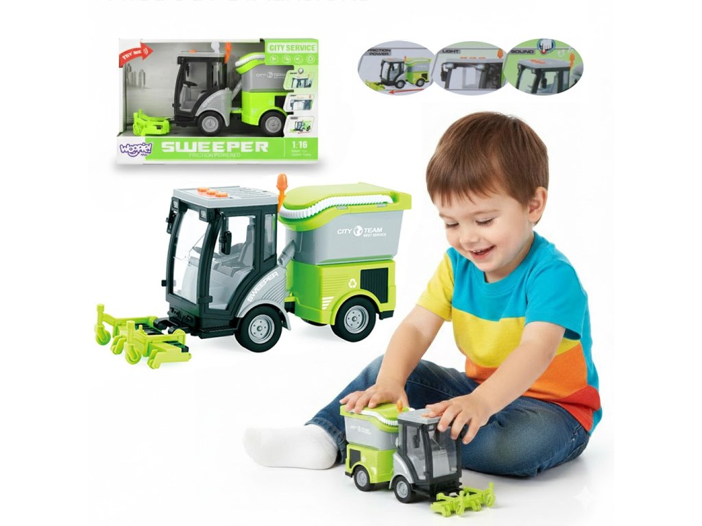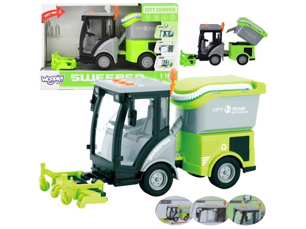 WOOPIE Mestský zametací stroj 1:16 Zelený Zvuk a svetelné efekty