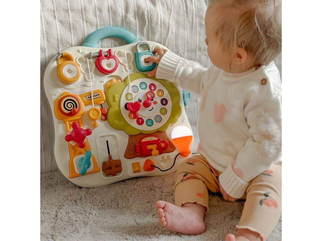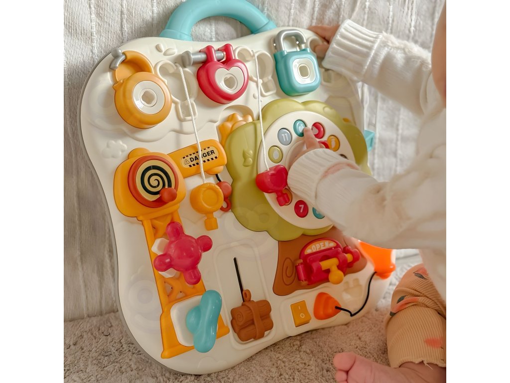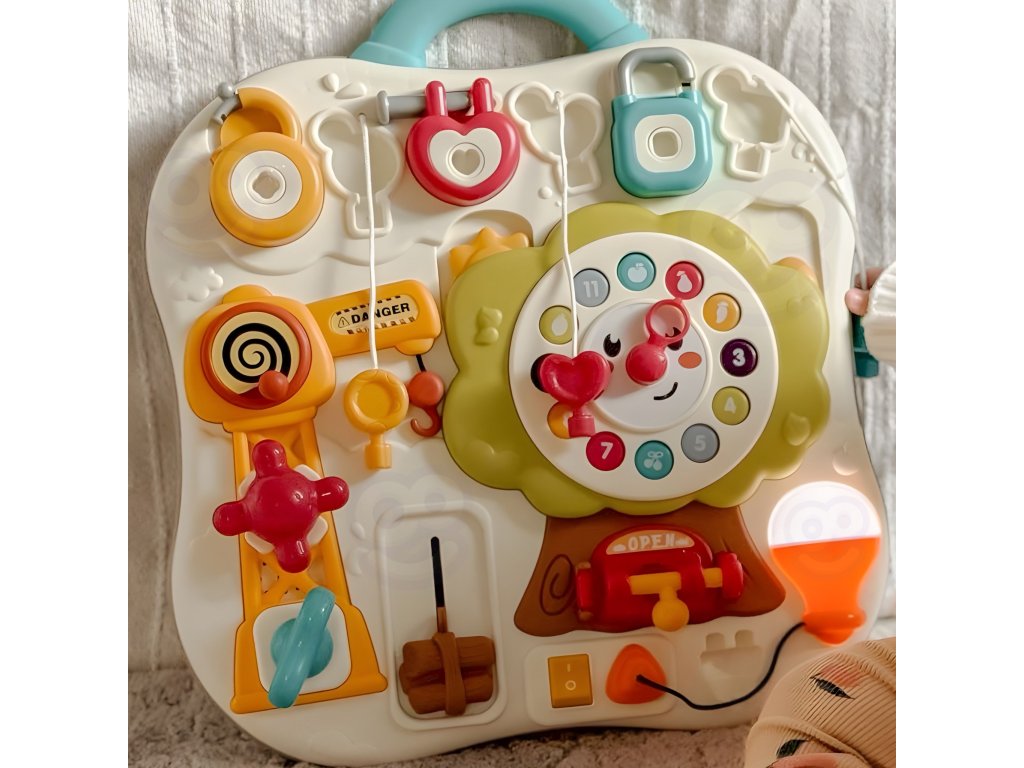 Vzdelávacia manipulačná tabuľa od značkyWoopie je ideálna hračka pre deti, ktoré sa môžu rozvíjať hrou. Vďaka farebné prvky, hodiny, ciferníky a prepínače učia dieťa logicky myslieť icvičenia zručností manuál. Rôzne atrakcie zabavia batoľa na celé hodiny a zároveň ho naučia novým zručnostiam. Hračka jesvetlo a mápohodlná rukoväťpreto sa ľahko prenáša. Je to skvelý nápad na vzdelávací darček, ktorý spája učenie a zábavu.