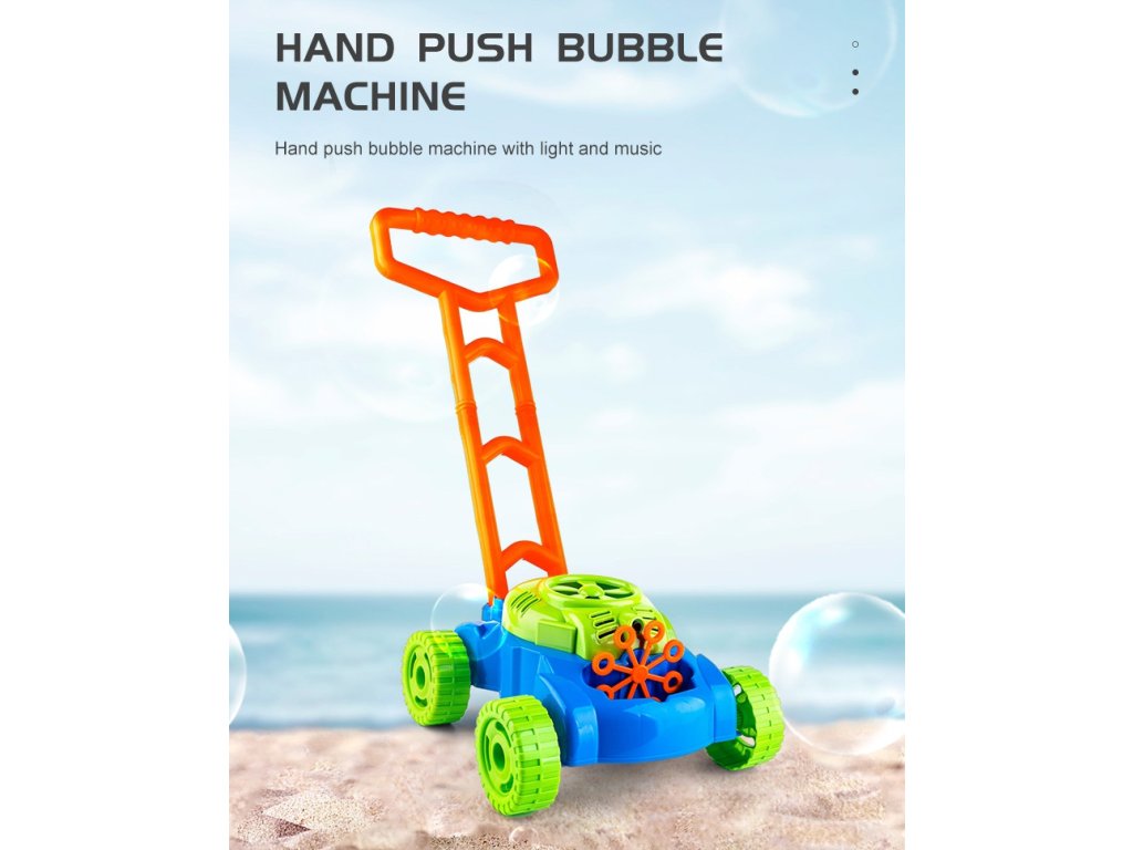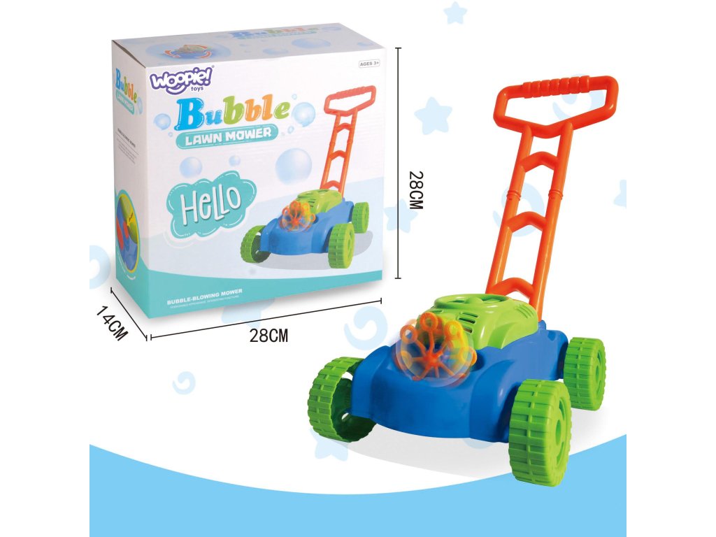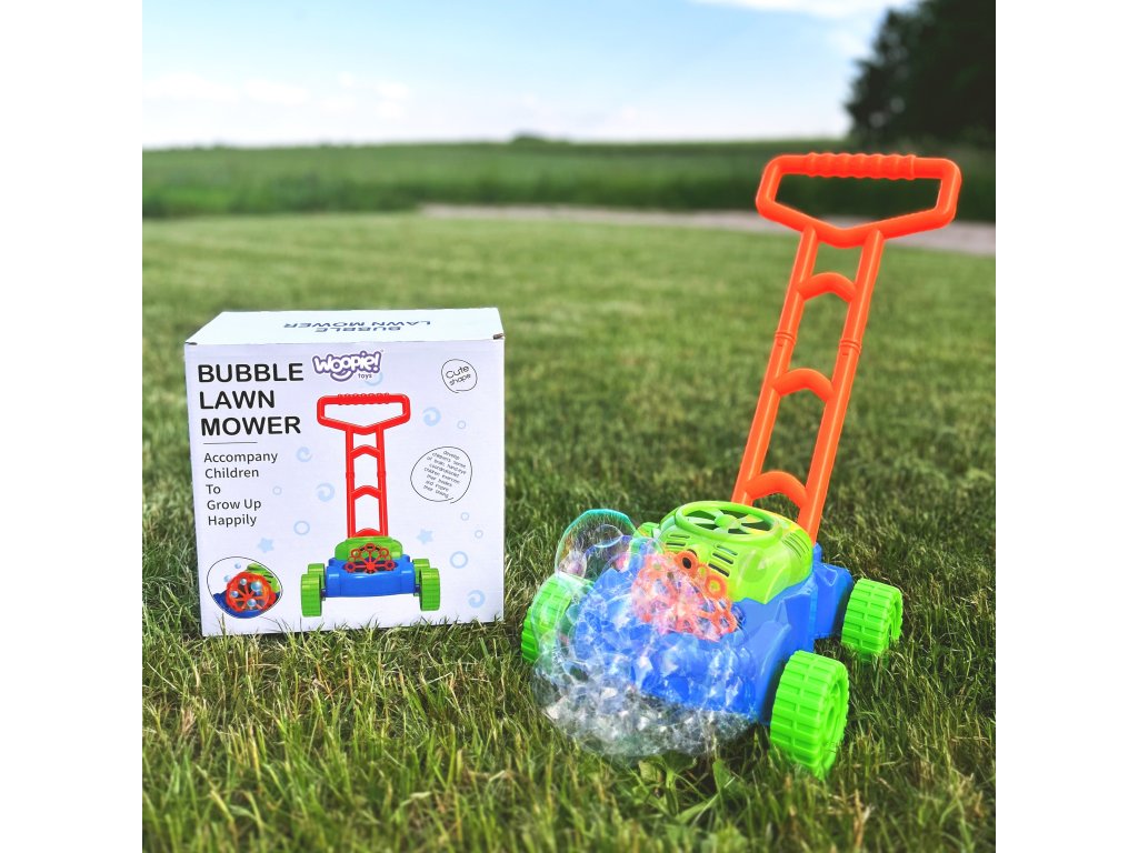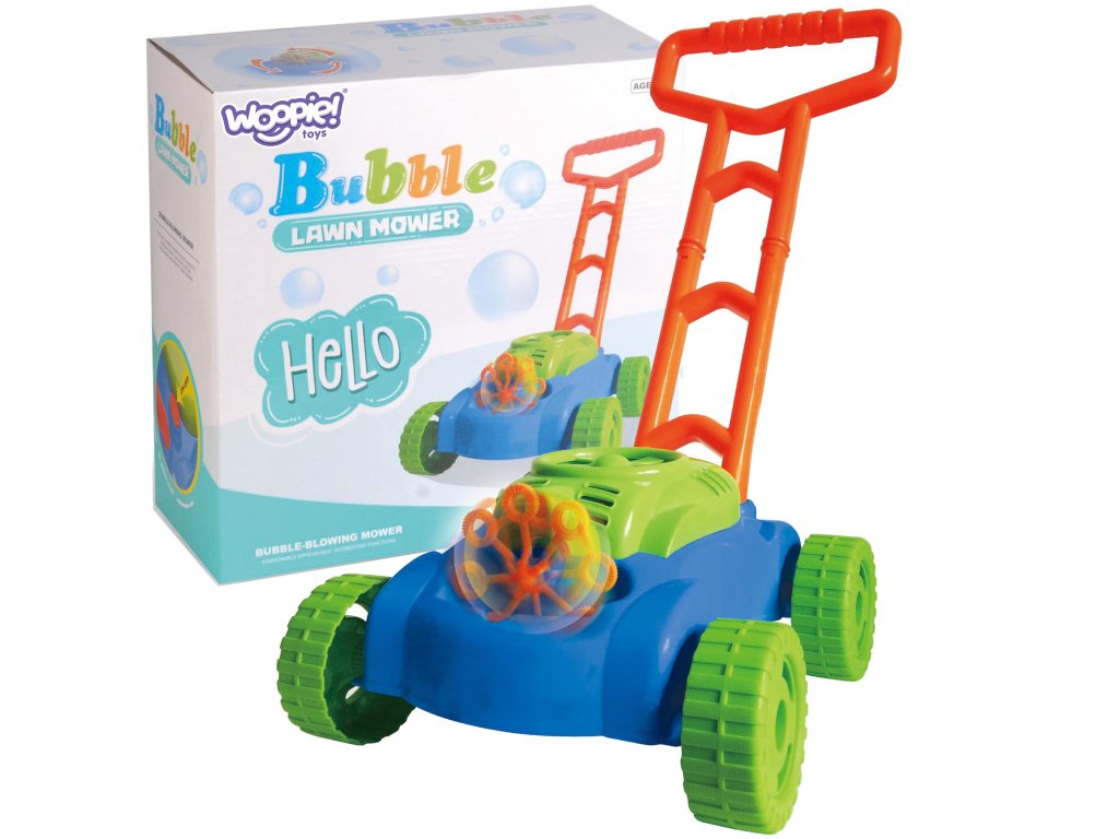 Senzačné kosačka mydlové bublinyod značkyWOOPIEUkradne srdce každému batoľaťu. Napodobňuje zvuky vydané by skutočné kosačka. Okrem toho je počuť zvuk mydlových bublín a v pozadí znie rozprávková melódia. Úspešná hra vonku môže byť ešte zaujímavejšia a atraktívnejšia. Kosačka na hračky Nielenže naučí dieťa, ako sa starať o trávnik, ale rozveselí aj tých najmenších a prinesie úprimný úsmev vďaka funkcia na uvoľnenie nespočetného množstva farebných mydlových bublín.