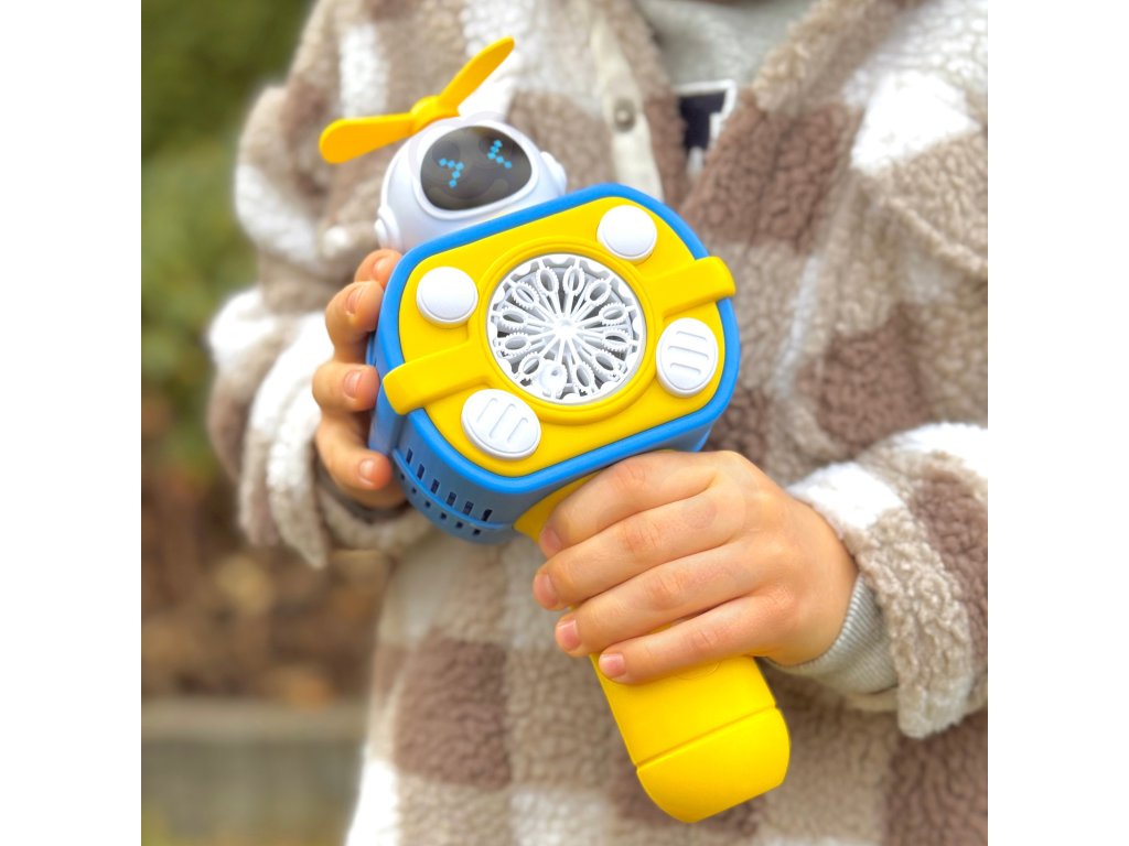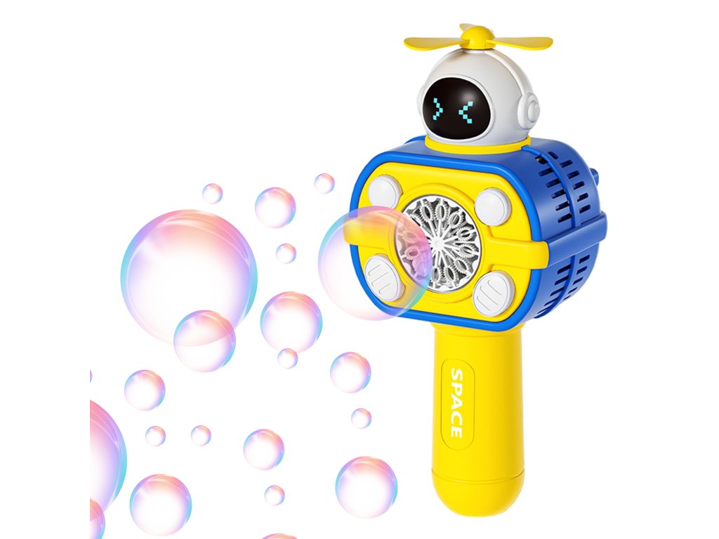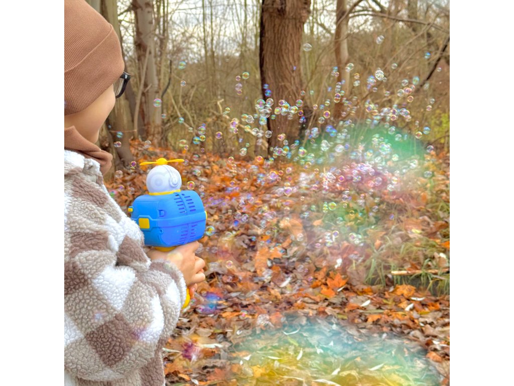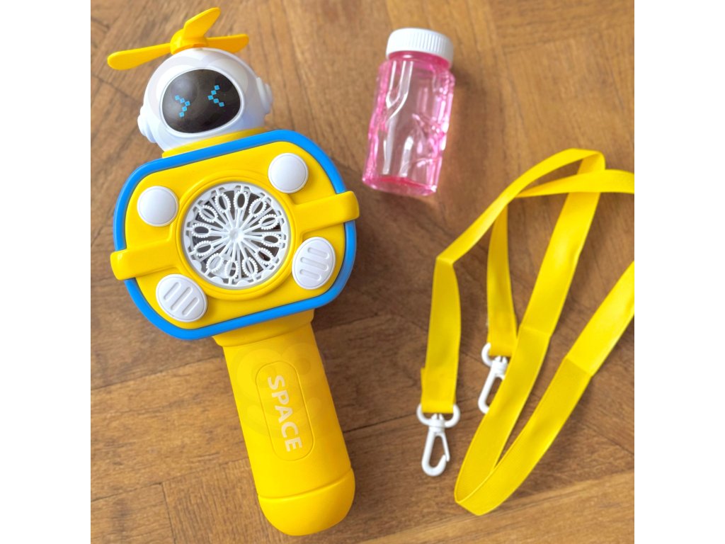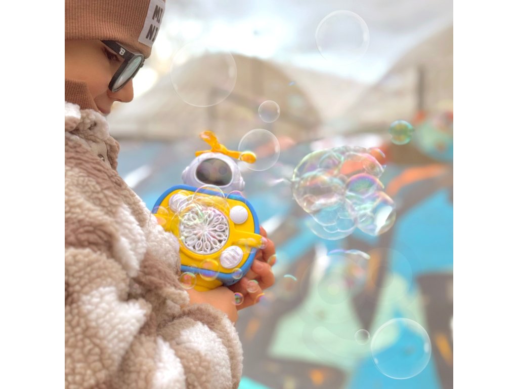 Bublinkový stroj v tvareastronaut značkyWOOPIE je skvelá hračka pre deti. Uvoľnené bubliny sa nielen vystreľujú s vysokou frekvenciouale dodatočne nainštalovaný veterný mlyn ich vyfúkne ešte viac. Hračku možno zapnúť stlačením tlačidla a prístroj automaticky uvoľní bubliny. Hračka má šnúrku, ktorú si dieťa môže zavesiť okolo krku, chodiť po nej a uvoľňovať bubliny bez toho, aby muselo stlačiť akékoľvek tlačidlo. Astronaut másvetelné efektya navyše obsahuje nádoba na tekutinu pre bubliny, ktoré sa naskrutkujú na miesto rukoväte a potom sa nasadia na rukoväť. Hračka je ideálna na hranie nasúd a vdomov.