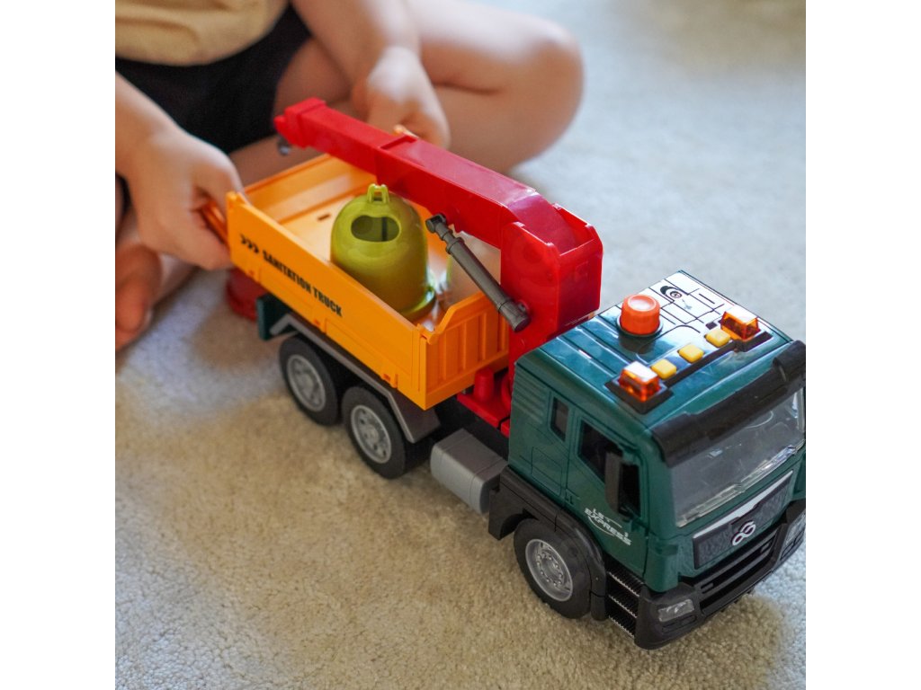 Nákladné vozidlo so žeriavom na kontajnery na odpad od značkyWoopie je interaktívna hračka, ktorá deti zavedie do sveta skutočnej práce mestských komunálnych služieb. Vozidlo je vybavenérealistické svetlá a zvukyovládané tlačidlom a mobilný žeriav, ktorá umožňuje prehrávať scény týkajúce sa triedenia a likvidácie odpadu. Sada obsahuje nádoby na separovaný odpad, vďaka čomu je hra ešte zaujímavejšia a náučná. Zavádza dieťa do sveta triedenia odpadu. Je dokonalou reprodukciou vozidla pre každodennú prácu komunálnych služieb, ktoré batoľatá vidia v uliciach svojho mesta.
