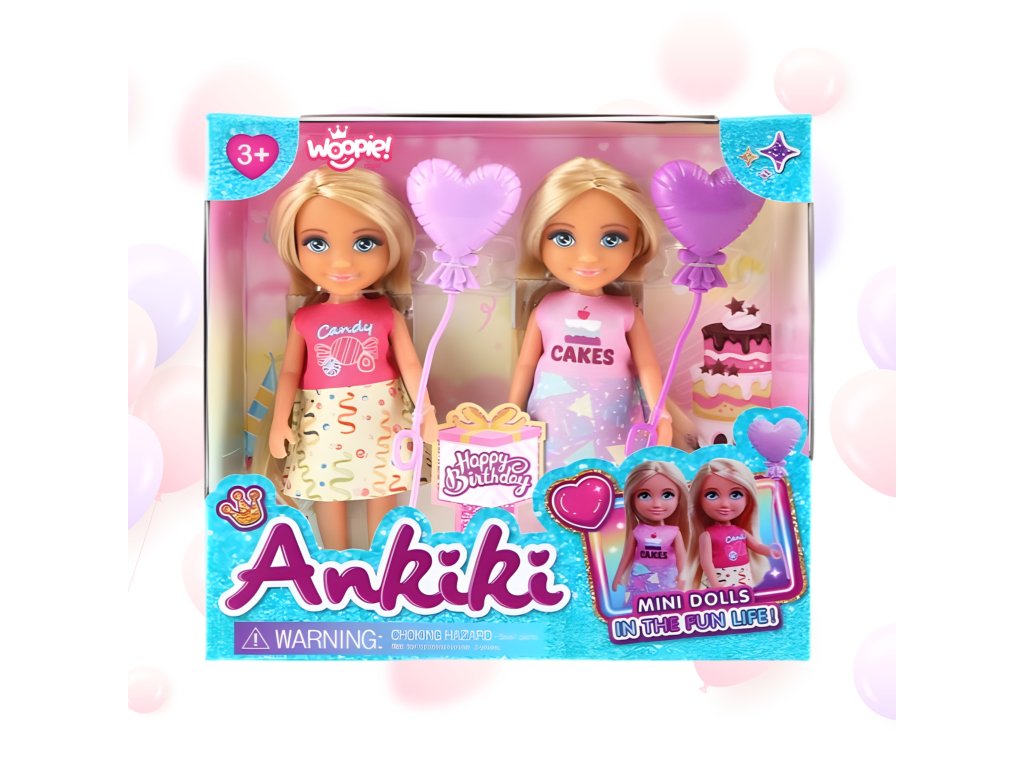 Pripravte sa na najsladšiu párty s fantastickou sadouAnkiki "Všetko najlepšie k narodeninám" z adresyWOOPIE! Táto jedinečná súprava obsahuje dve rozkošné minibábiky v tematických farebných oblečkoch - jednu v štýle"Candy", druhý "Koláče". Každá bábika je pripravená oslavovať, drží krásnubalón v tvare srdca. Je to ideálna hračka na hranie narodeninových scénok, pečenie tort a organizovanie osláv. Súprava rozvíja kreativitu a umožňuje deťom vytvárať nespočetné množstvo veselých príbehov.