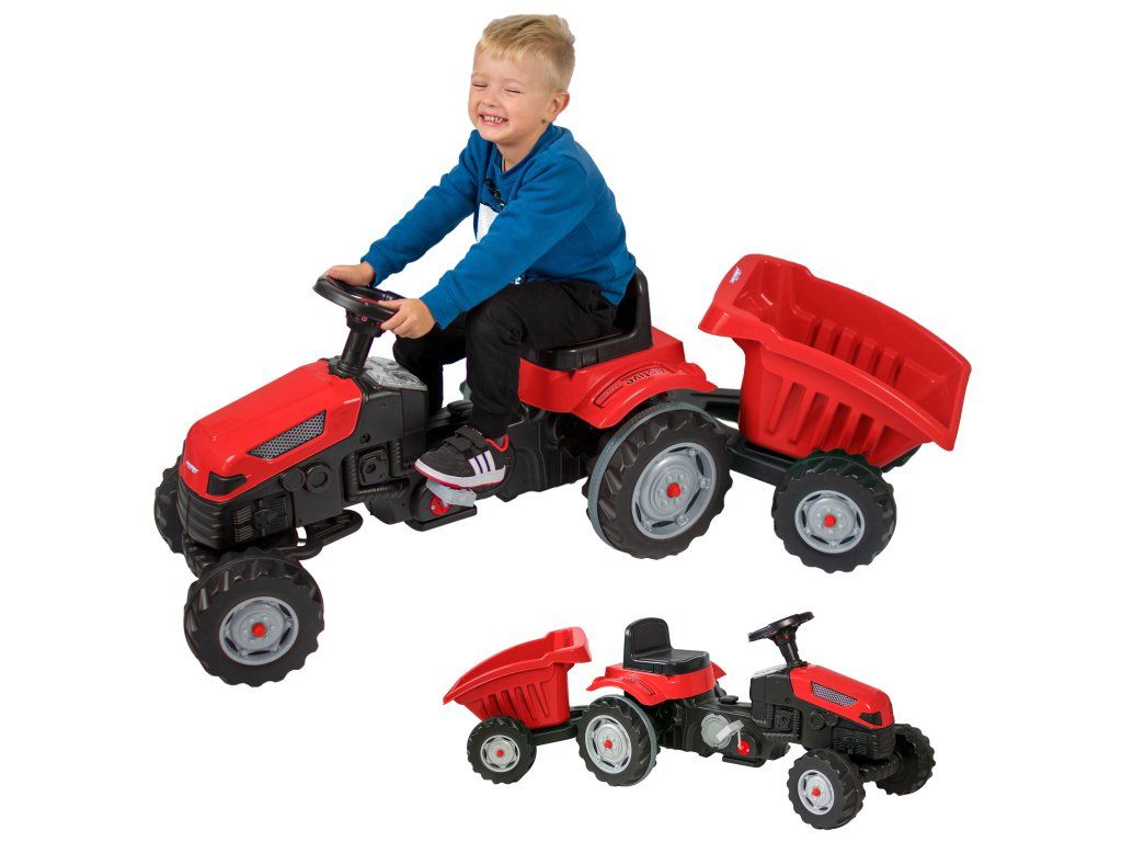 Červený pedálový traktor s prívesom značkyWoopie je ideálnou voľbou pre každé batoľa, ktoré sníva o práci na farme alebo jednoducho miluje poľnohospodárske vozidlá!Vďaka realistickému vzhľadu a mobilný prívesdeti sa môžu zahrať na skutočného traktoristu, ktorý preváža hračky, piesok, kamene alebo iný "náklad" po dome, záhrade, pozemku alebo ihrisku. Traktor poháňaný detskými nohami umožňuje aktívne používanie hračky, čo zvyšuje výdrž dieťaťa a podporuje pohyb vonku. Táto stránkaideálny darček pre každé dieťa staršie ako 3 rokyči už žije na vidieku alebo v meste.
