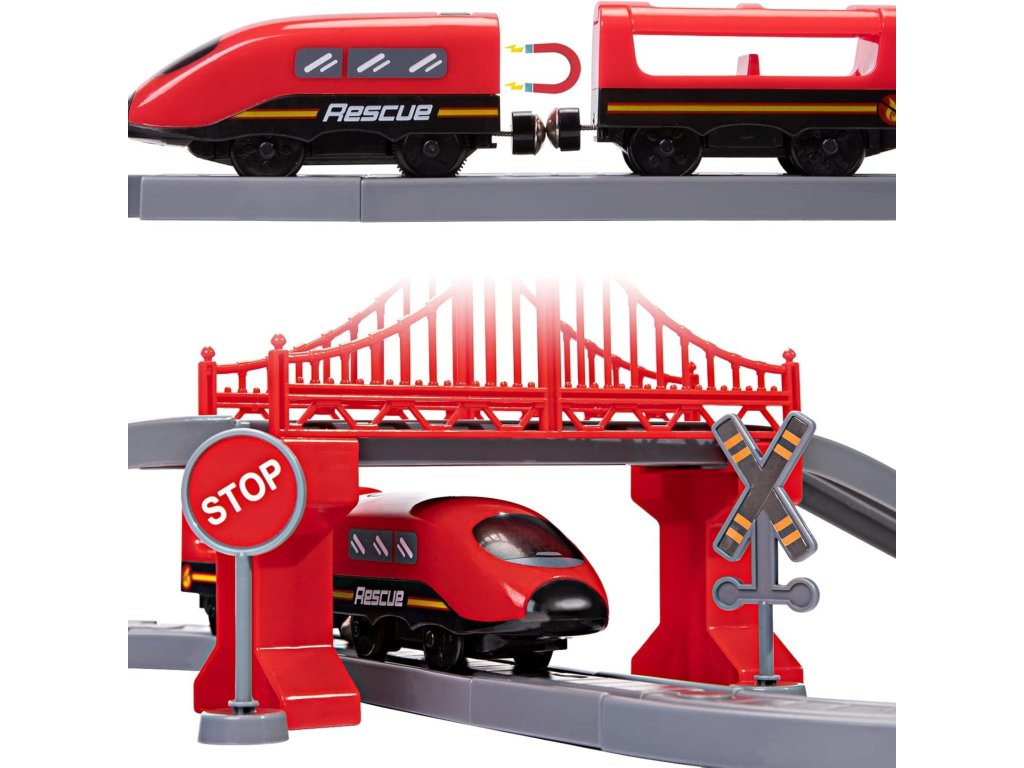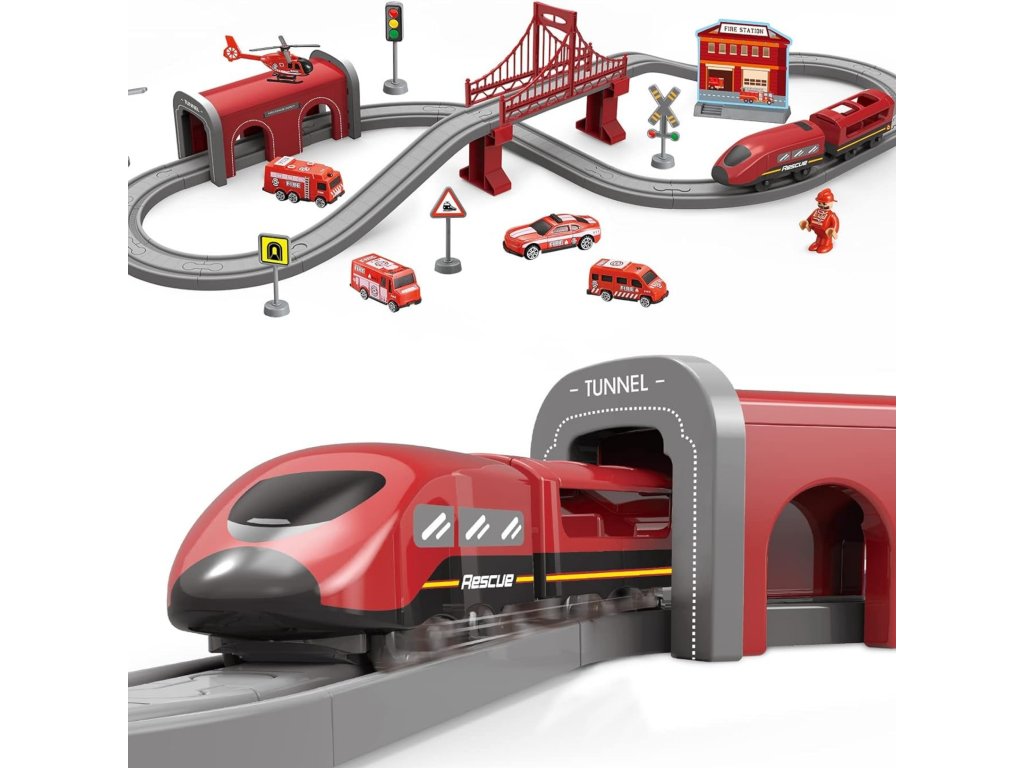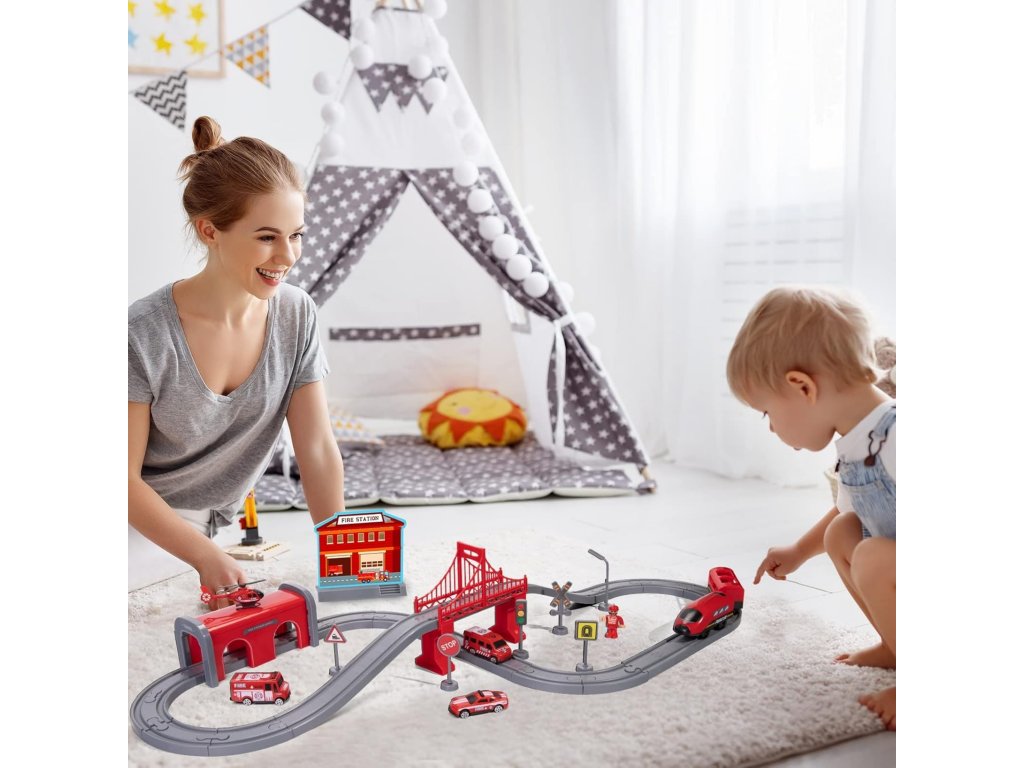 Fascinujúca elektrická vlaková súprava odWoopie je skutočným veliteľským centrom pre malých staviteľov! Červený expresný vlak so zvukmi skutočného železničného vozidla uvedie vaše dieťa do sveta stavania, plánovania trasy a vytvárania vlastných scenárov hry. Vďaka množstvu mostov, tunelov, semaforov a hasičského vybavenia môže batoľa skladať neobmedzený počet rozvrhov tratí a potom sledovať, ako sa vlak rúti ich originálnym mestom. Je to hračka, ktorá spája vzrušenie skutočnej železnice s kreativitou detského sveta