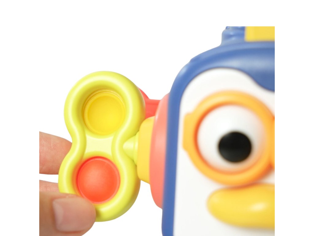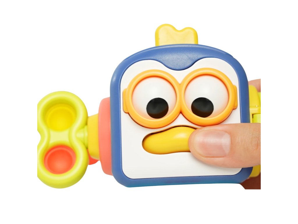 - - Tvár tučniaka obsahuje dva pohyblivé prvky - keď stlačíte nos, hračka vydá pískací zvuk a oči sa začnú pohybovať.