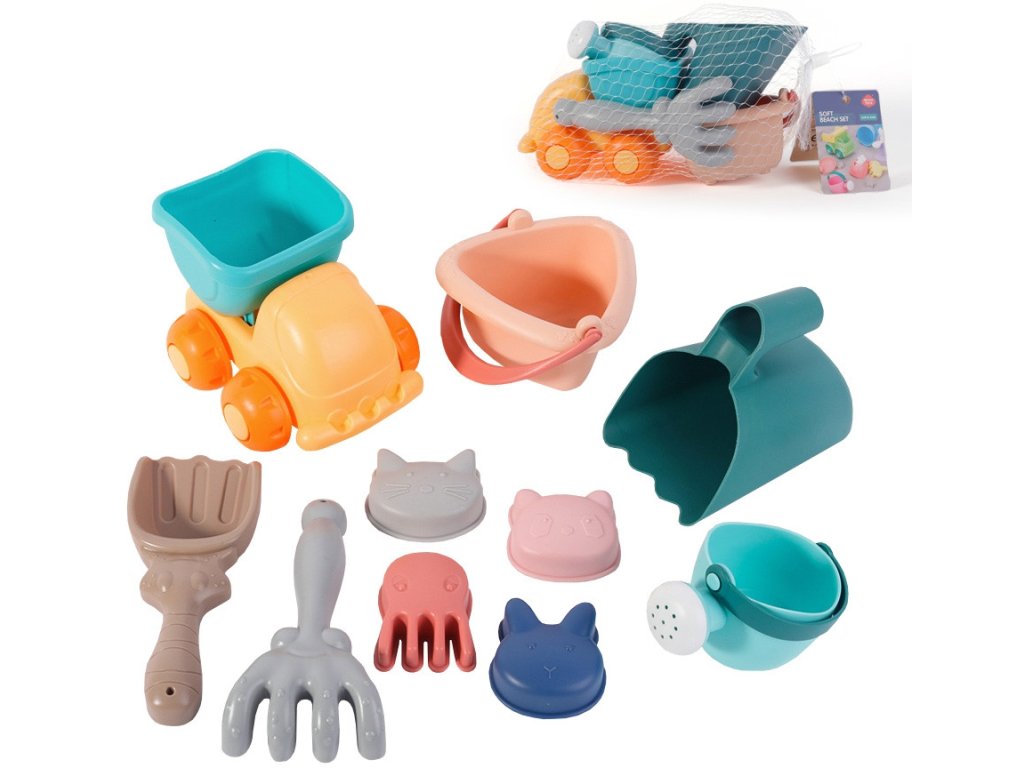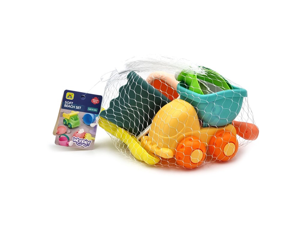 Sada piesku vo vedre od značkyWOOPIE je skvelým doplnkom na pieskovisko alebo aj do záhrady. Súprava obsahuje7 prvkov: vedro, kanva na polievanie, 2 formy, lopata a hrable a hračkárske auto. Súprava má krásnypastelový dizajn. Vedro a konev mápohodlná rukoväť nosiť. Zaručene super zábava vpieskovisko, napláža dokonca aj vzáhrada!