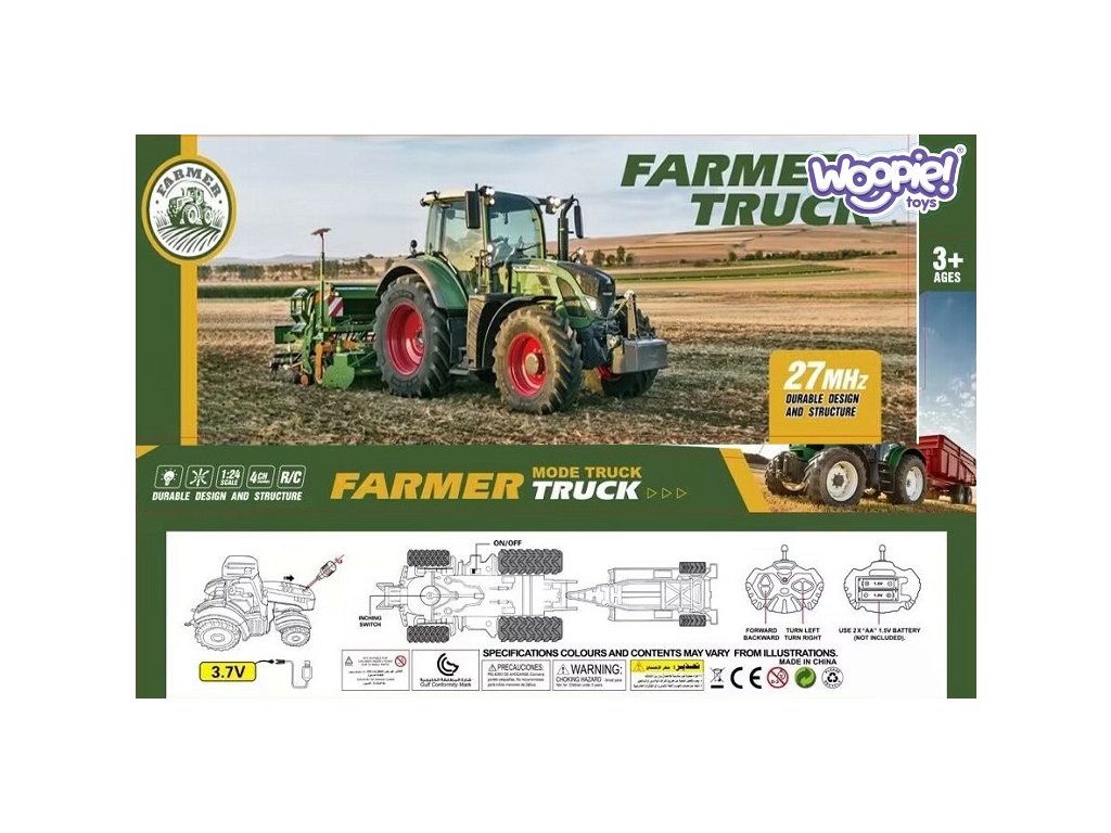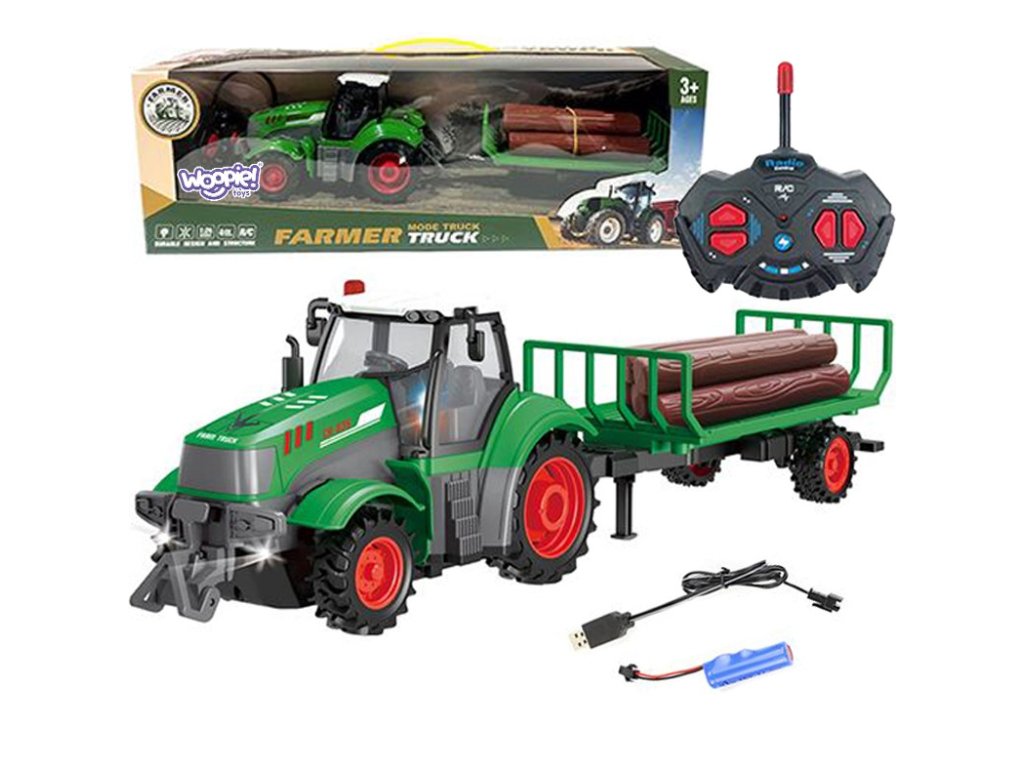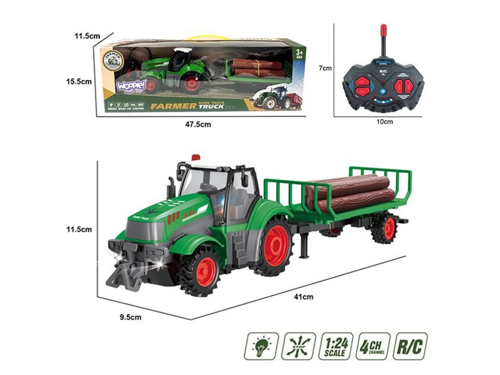 WOOPIE RC traktor na diaľkové ovládanie s prívesom - mierka 1:24