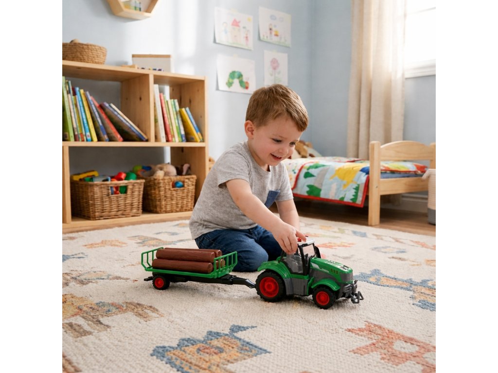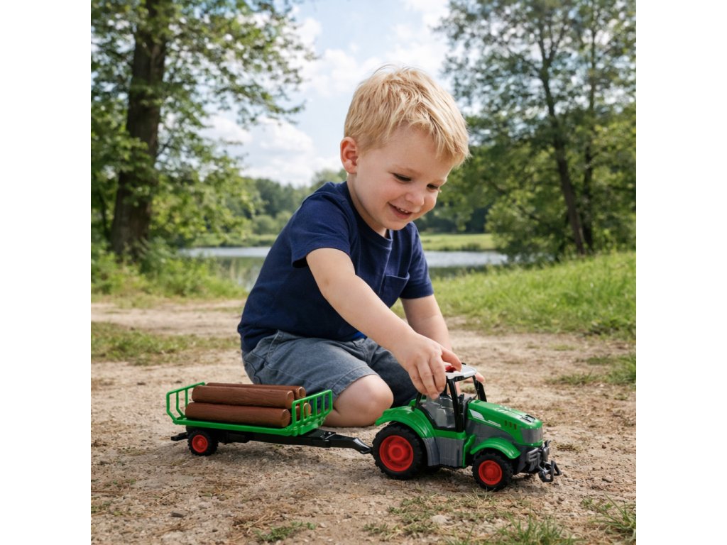 Traktor "Farmer Truck" od značkyWOOPIE je nielen skvelá zábava, ale aj skvelý spôsob, ako dieťa zoznámiť ssvet poľnohospodárstvo. Je to dar, ktorý prebúdzazvedavosť, podporujekoordinácia a učí plánovať prácu na farme. Súprava obsahuje realisticky vyrobený model traktora s prívesom, ktorého dizajn a funkcie prenesú batoľa priamo na vidiecke pole a dodajú mu pocit skutočnej práce poľnohospodárskych strojov.