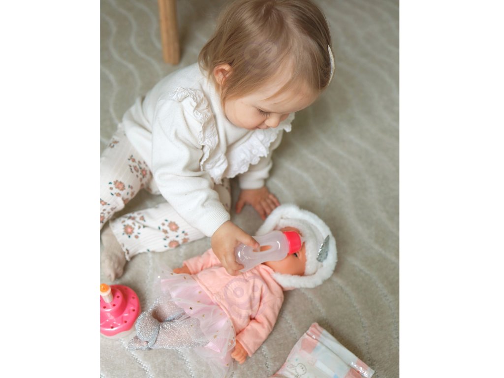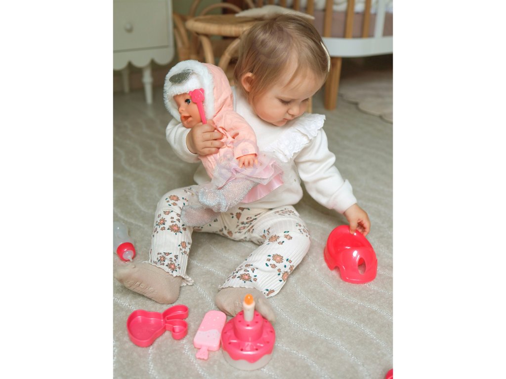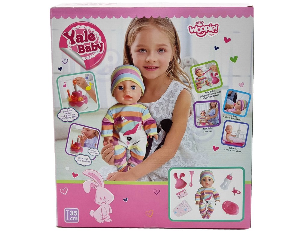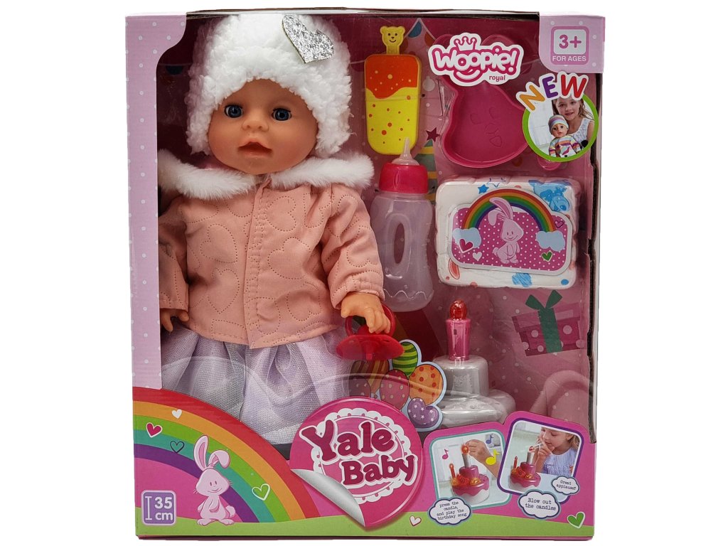 Interaktívna detská bábika Narodeniny malej Sophieod značkyWOOPIE zo sérieROYAL je ako skutočné dieťa. Výška batoľaťa je35 cm.Môže piť z fľaše. Sada obsahuje miskaz ktorého môžetekrmivo dieťa a plienky na zmenu. Ruky a nohy sú plnemobilnýa samotná bábika môžestojan asedieť. Bábika sa dodáva aj snarodeninová tortaktorévydávam zvuky. Bábika je oblečená v rozkošnomkostým (bábiku možno zmeniť). Hrou s bábikou si dieťa rozvíja tieto vlastnostizmysel pre empatiu azodpovednosť!