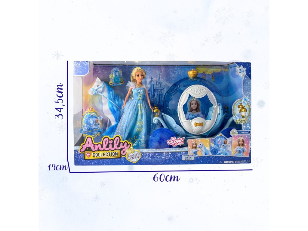 Vydajte sa na magickú cestu do ľadovej krajiny so súpravouĽADOVÁ PRINCEZNÁ A ČAROVNÝ ŽIARIACI KOČIARod značky Woopie! Táto rozprávková súprava je ideálnym darčekom pre malé snehové kráľovné od 3 rokov. Súprava obsahujekrásna bábika princezná v trblietavých modrých šatách,elegantný biely kôň aľadový kočiar v tvare tekvice. Kočiar má jedinečný modrý priesvitný dizajn a je označený ako "LIGHT", čo zaručujeúžasné svetelné efekty počas hry. Bábika má dlhé blond vlasy a kráľovský diadém. Hranie rolí ešte nikdy nebolo také pútavé!