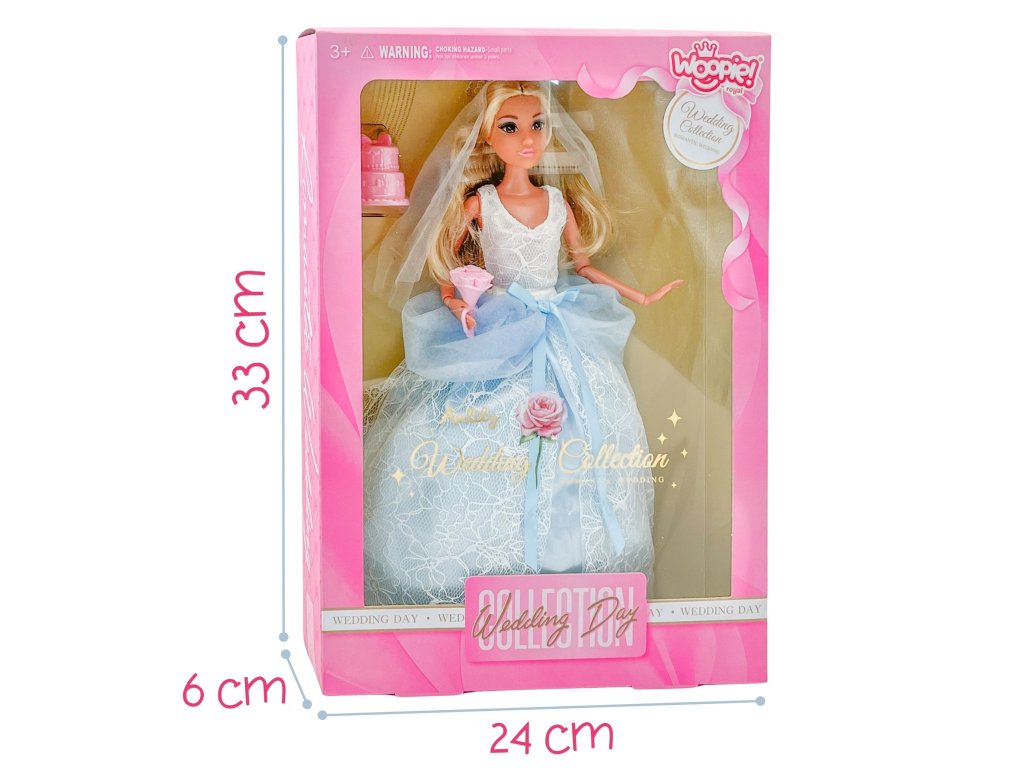 Bábika Lily Nevesta od značky Woopie je jedinečná ponuka, ktorá umožní každému dievčatku zažiť čarovný svadobný deň. Bábika má na sebeočarujúce svadobné šaty s čipkovaným vrchným dielom a tylovou spodnou časťou. Celok je doplnenýzávoj akytica v tvare srdca. Sada obsahuje aj mini svadobný koláč. Je to ideálna hračka preuzákonenia scenárov týkajúce sa svadieb a svadobných obradov, pričom sa rozvíjapredstavivosť a sociálne zručnosti. Výrobok je určený pre detiod 3 rokov.