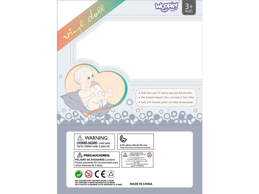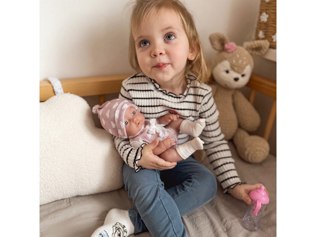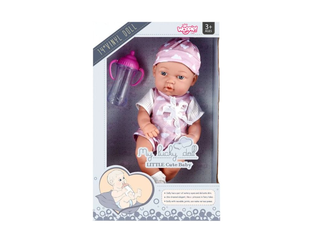 Moje rozkošné dieťa od značkyWoopie Royal je produkt, ktorý vaše dieťa poteší. Mápohyblivé končatiny a krásne pútavé. Bábika je oblečená v ružovom roztomilom body a na hlave má zodpovedajúcu čiapočku a ponožky. Okrem tohoružová fľaša je súčasťou baleniaktoré môže bábika držať v rukách.