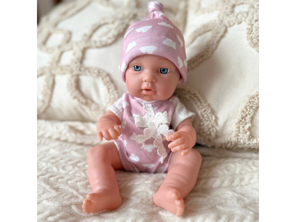 - - Bábika má mäkké pohyblivé gumové končatiny a plastové bruško bez plyšovej výplne