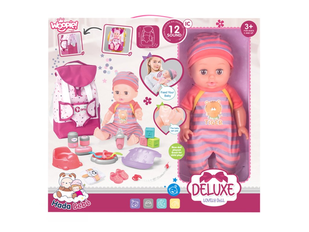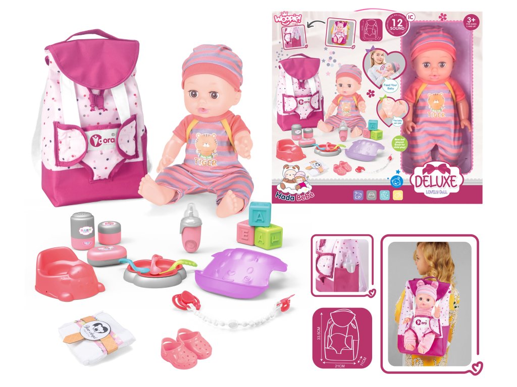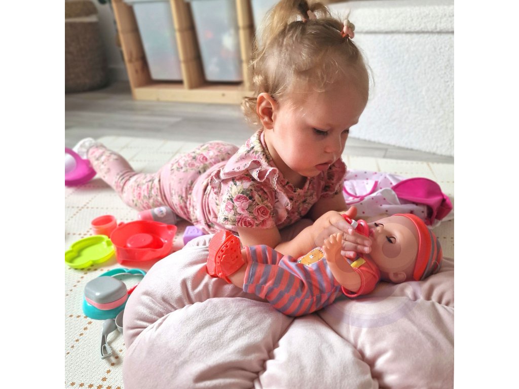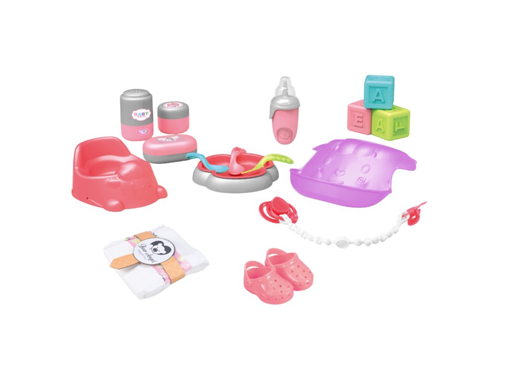 Súprava obsahuje všetko potrebné príslušenstvo na starostlivosť o bábiku. Nájdete v nejkŕmna súprava,prezliekanie a hranie. Bábikamôže dokonca čúrať do nočníkačo je realistický prvok, ktorý poteší každé dieťa. Bábiku sa oplatí vziať na prechádzky abatoh s nosičomčo deťom umožní ešte viac sa zapojiť a kreatívne sa hrať.