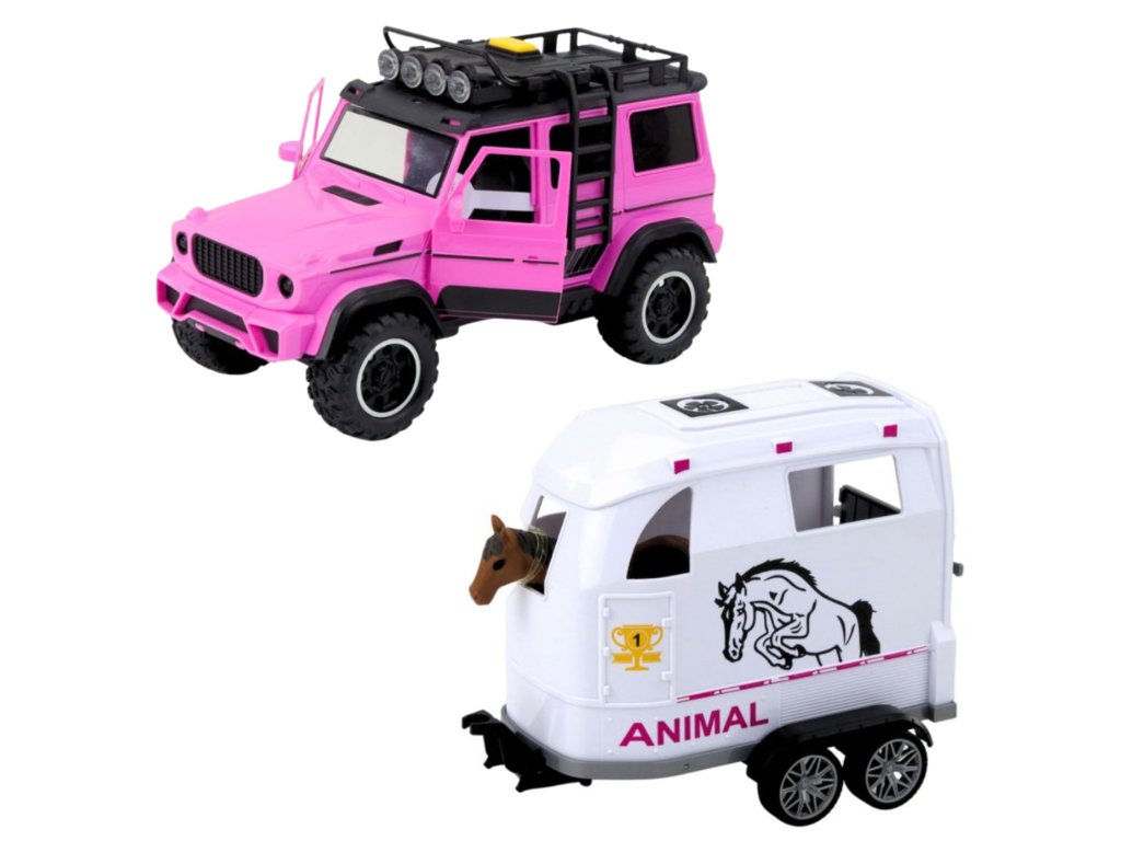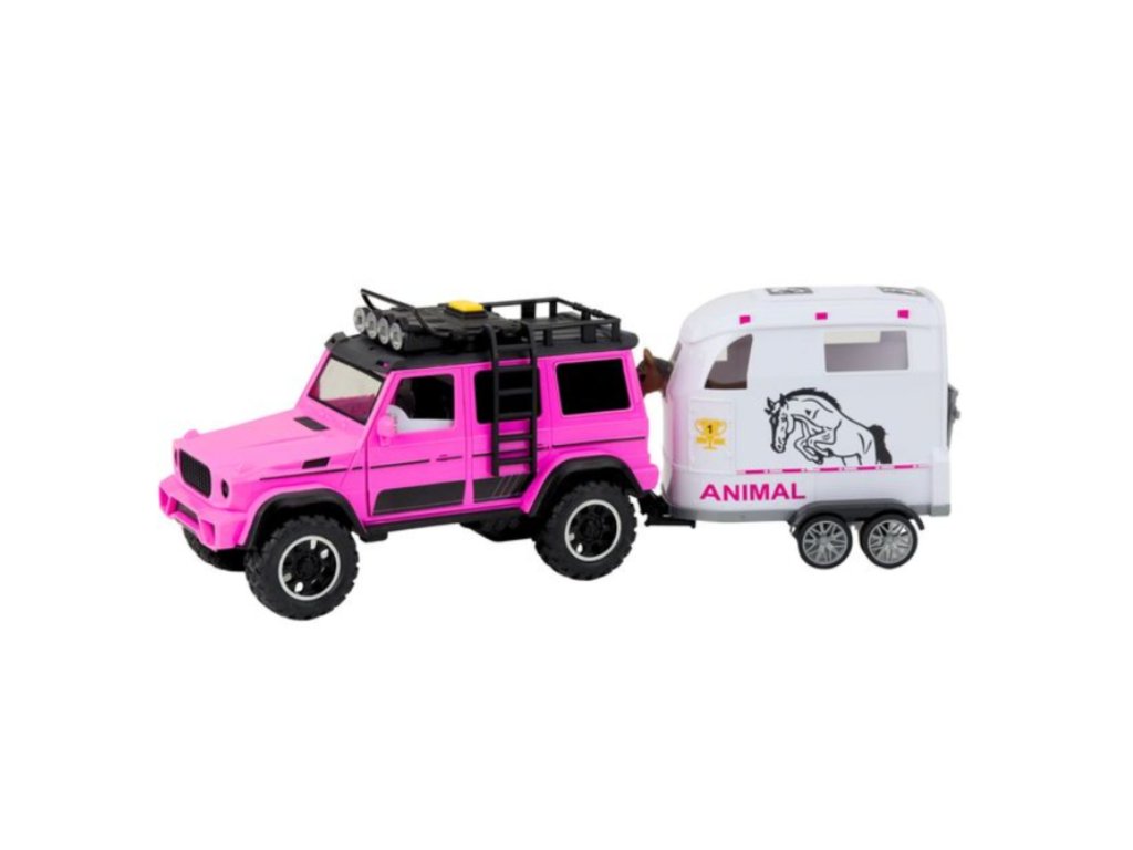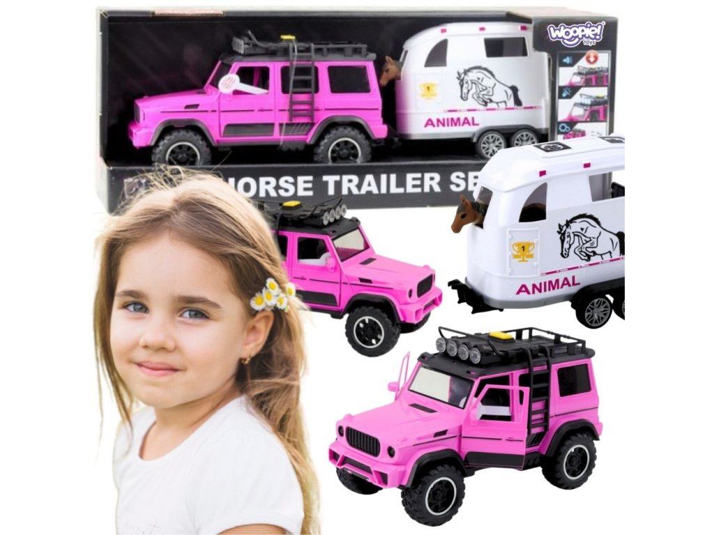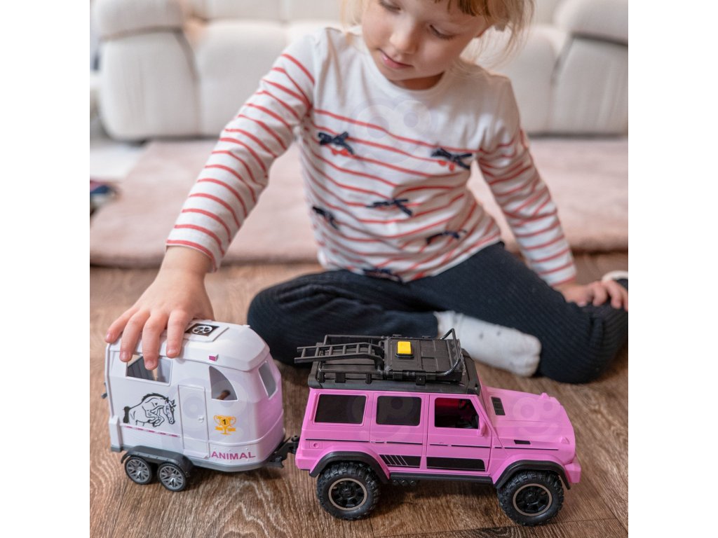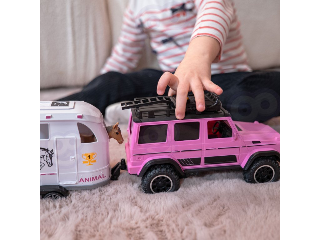 WOOPIE Ružová súprava terénneho auta s prívesom a figúrkou koňa