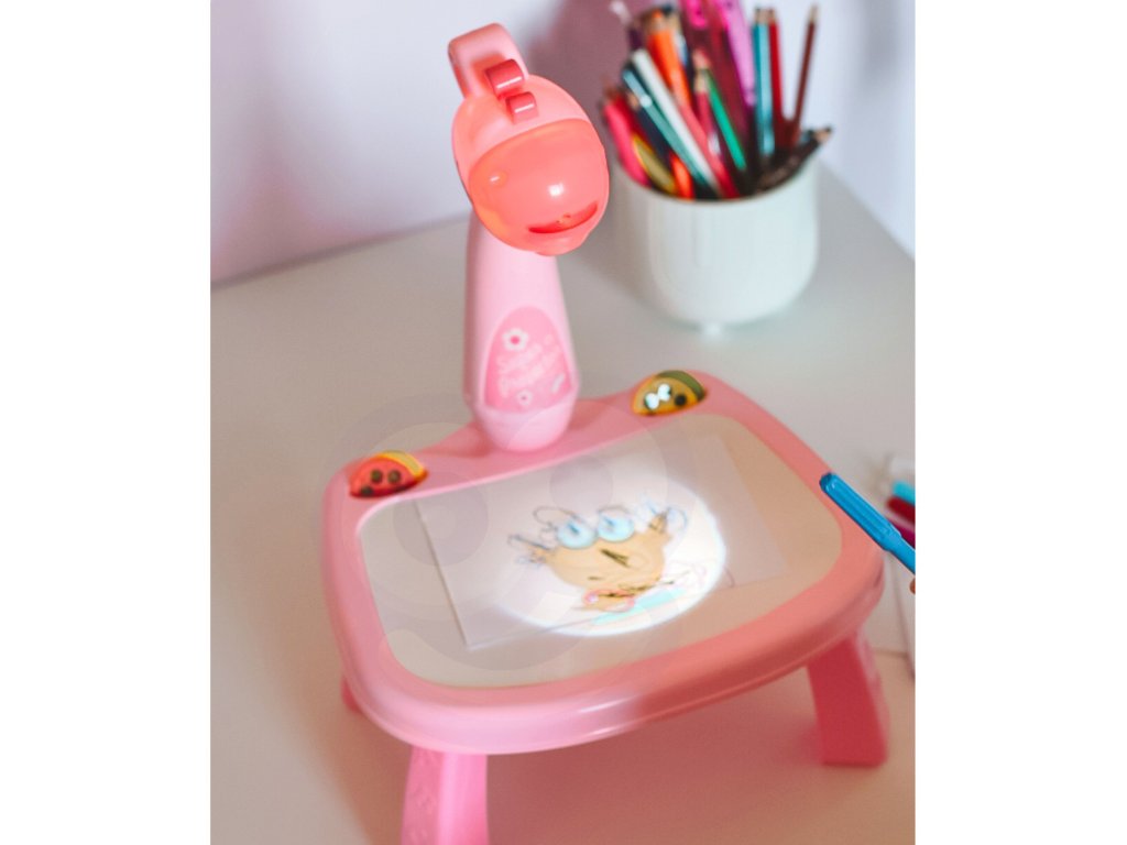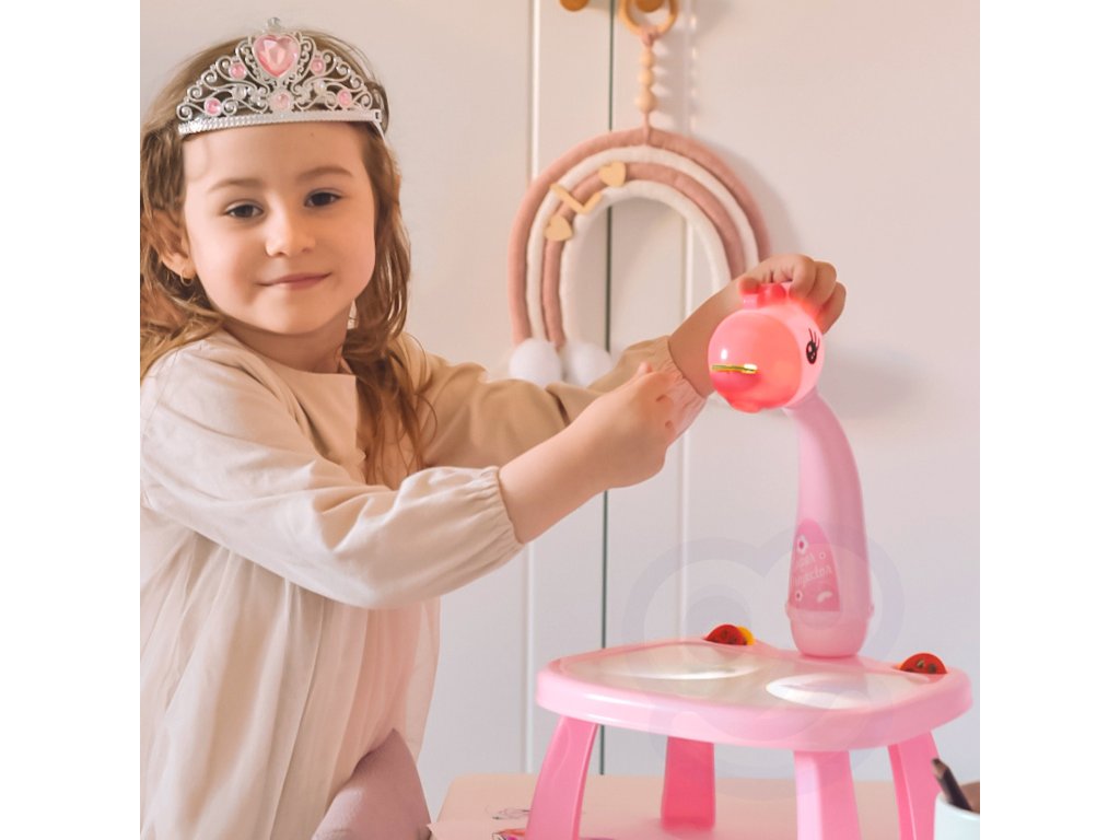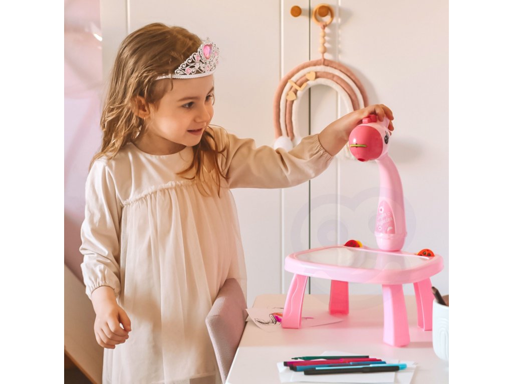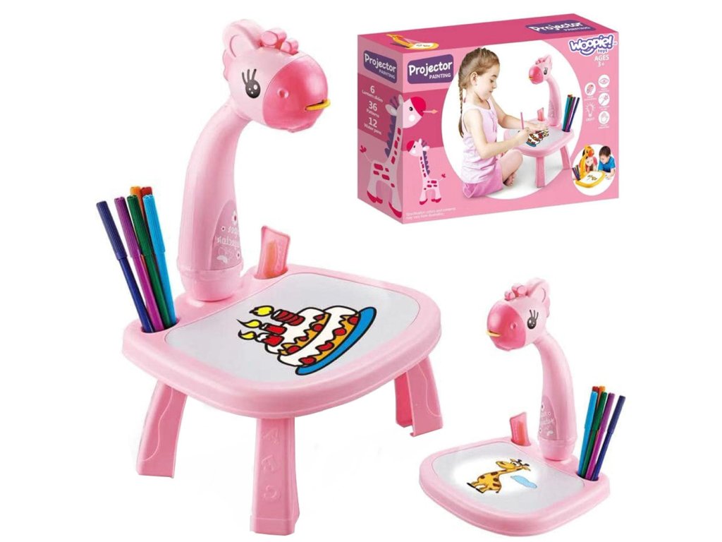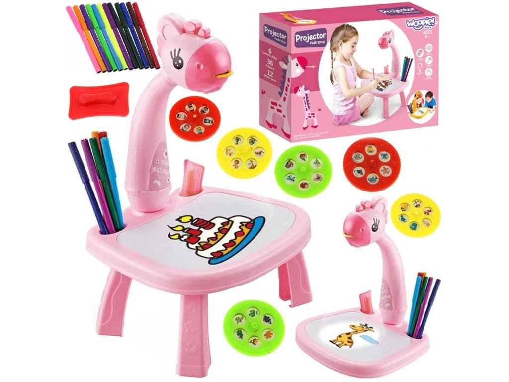 WOOPIE Ružová tabuľa na kreslenie s projektorom žirafy + fixky
