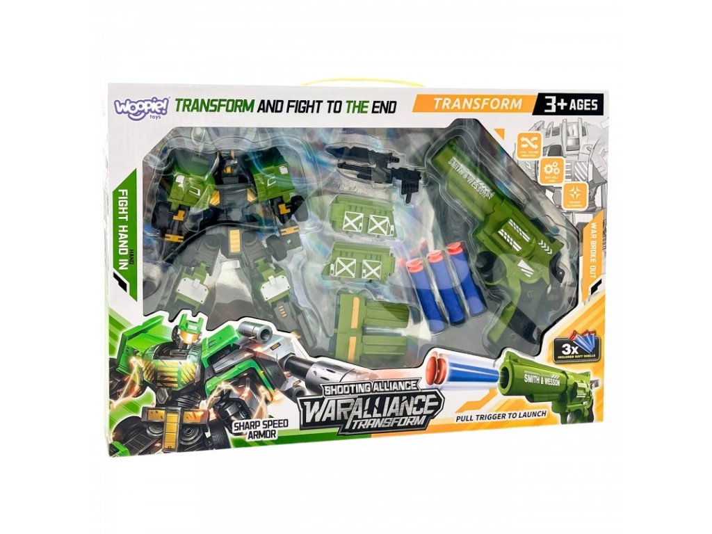 Preneste sa priamo do centra vzrušujúcej akcie sBojový robot od Woopie! Táto dynamická sada je ideálna pre malých stratégov a nadšencov vesmírnych súbojov. Obsahuje výkonnúrobot, ktorý sa ľahko premení na bojové vozidlo, ako ajrevolver s bezpečnostnými nábojmipripravte sa na nespočetné hodiny kreatívnej zábavy pri odohrávaní epických bitiek a rozvíjaní svojich strategických schopností.Je čas transformovať sa a bojovať až do konca!