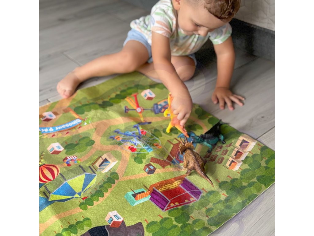 - Plstená podložka s kulisou dinosaurieho parku