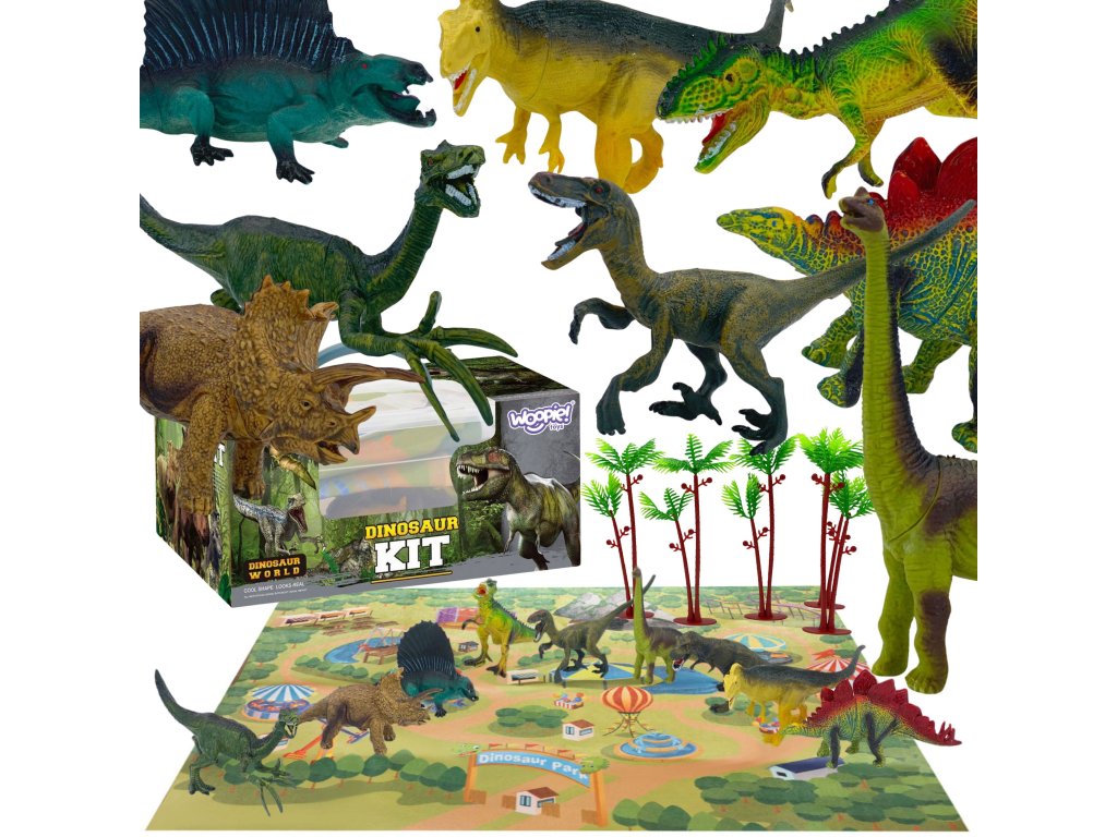 WOOPIE Sada figúrok dinosaurov 16 ks + podložka + truhlica