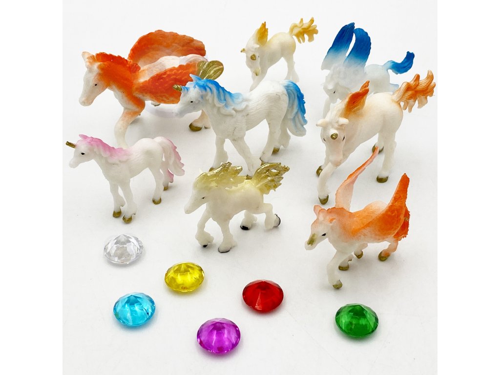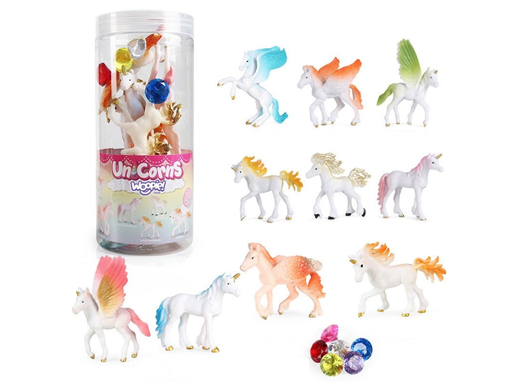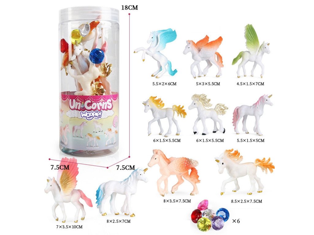 Súbor obrázkov od značkyWOOPIE je dokonalá súprava pre všetkých fanúšikov jednorožcov. Súprava obsahuje10 koní jednorožcov a 6 ks.kryštály/diamanty.Reálne vyzerajúce figúrky rozšíria malú zberateľskú zbierku, naplniavzdelávacia funkcia aposkytovať zábavu s ktorými batoľa rozšíri svoju predstavivosť a tvorivosť.