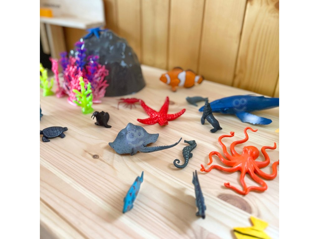 Súbor obrázkov od značkyWOOPIE je ideálna sada pre všetkých fanúšikov morských živočíchov. Súprava obsahuje21 morských živočíchov, 10 rastlín, rohoža rock.Reálne vyzerajúce figúrky rozšíria malú zberateľskú zbierku, naplniavzdelávacia funkcia aposkytovať zábavu s ktorými batoľa rozšíri svoju predstavivosť a tvorivosť.