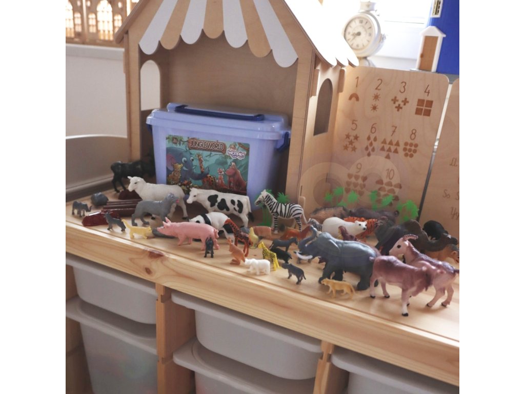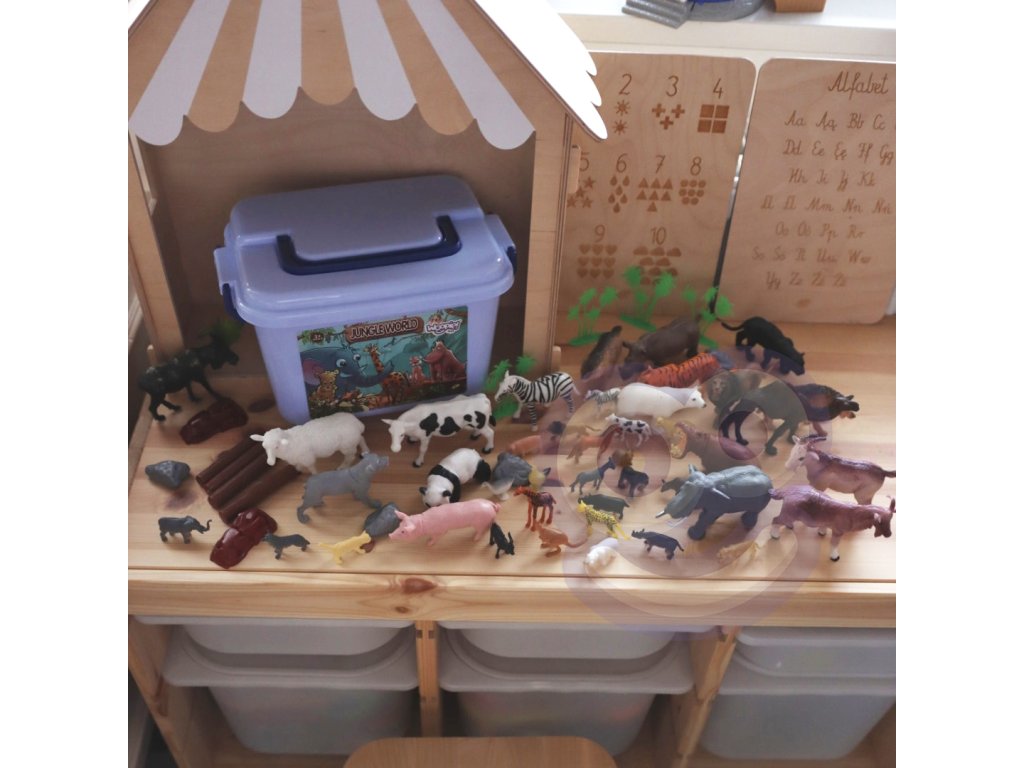 Súbor obrázkov od značkyWOOPIE je dokonalá sada pre každého fanúšika dinosaurov. Súprava obsahuje44 zvierat, skál, rastlín a trámov stromov.Reálne vyzerajúce figúrky rozšíria malú zberateľskú zbierku, naplniavzdelávacia funkcia aposkytovať zábavu s ktorými batoľa rozšíri svoju predstavivosť a tvorivosť. Súčasťou balenia je úložný box s množstvom zvieratiek.