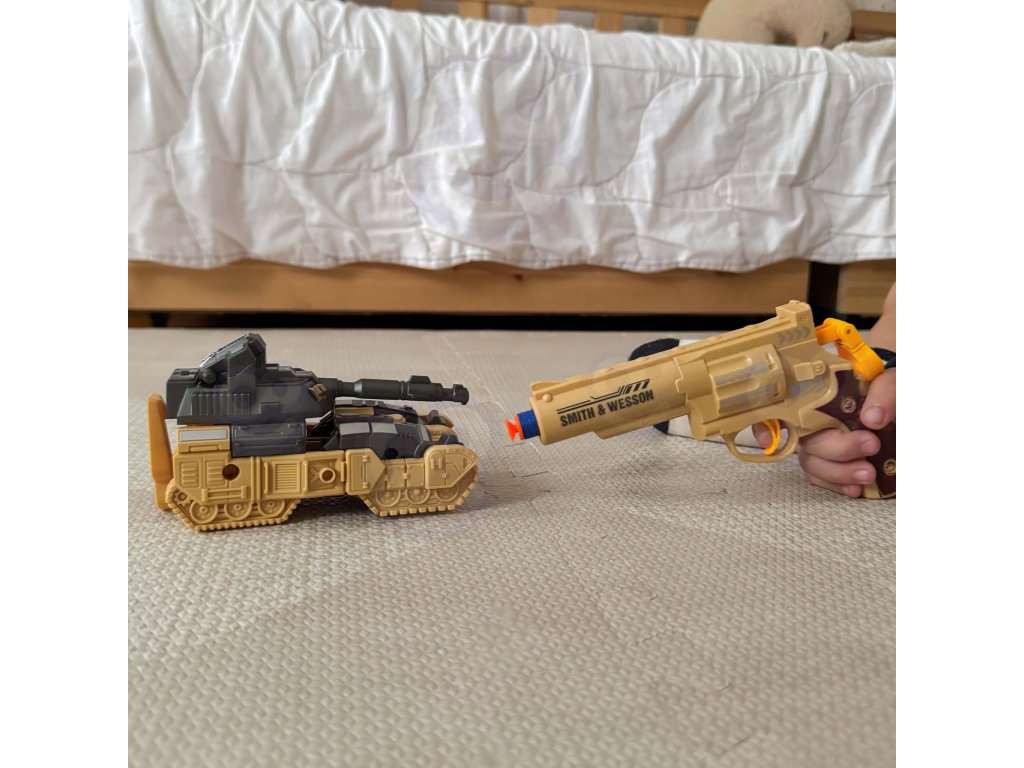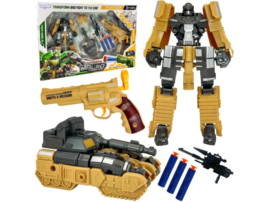WOOPIE Sada transformujúceho sa robota tanku a vystreľovača šípov 3 v 1 hnedá