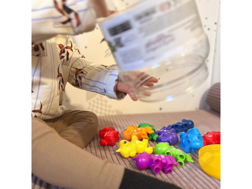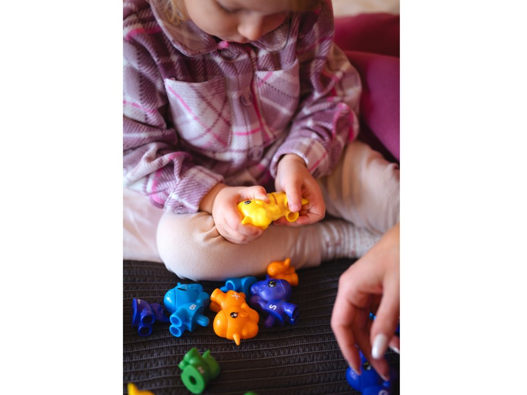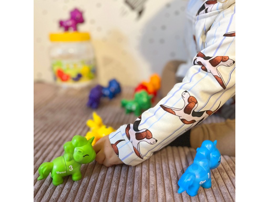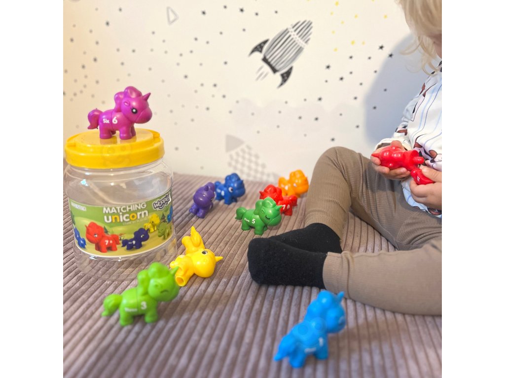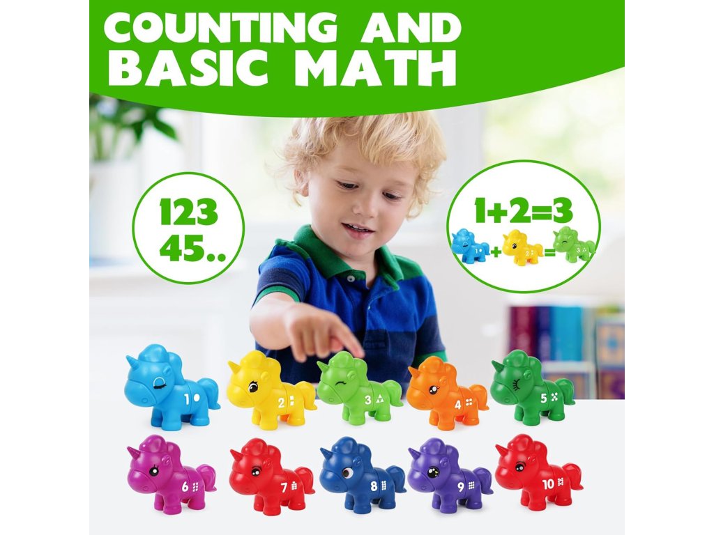 Vzdelávacia hračka "Match the Numbers" je kreatívna hračka, ktorá vaše dieťa prenesie do čarovného sveta jednorožcov. Pri hre môžu batoľatá spájať rôzne časti jednorožcov, priraďovať ich k sebe podľa farieb, čísel alebo tvarov. Je to nielen skvelá forma zábavy, ale aj rozvíjajúca hračka, ktorá stimuluje manuálne zručnosti, postreh a logické myslenie vášho dieťaťa. Súprava pozostáva z farebných jednorožcov a je navrhnutá tak, aby deťom poskytla hodiny pútavej a poučnej hry.