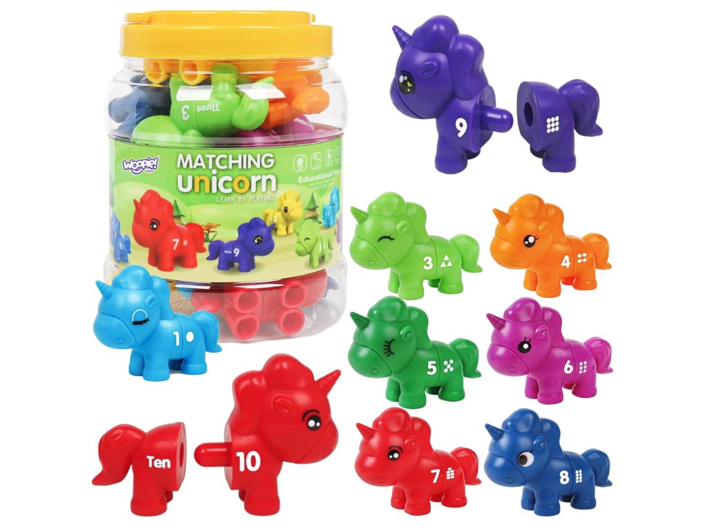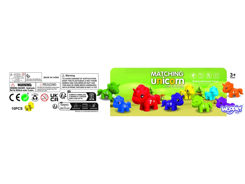 WOOPIE Sada Učíme sa čísla Farby Montessori Jednorožec Skladacie figúrky "Match the Numbers" 13 ks