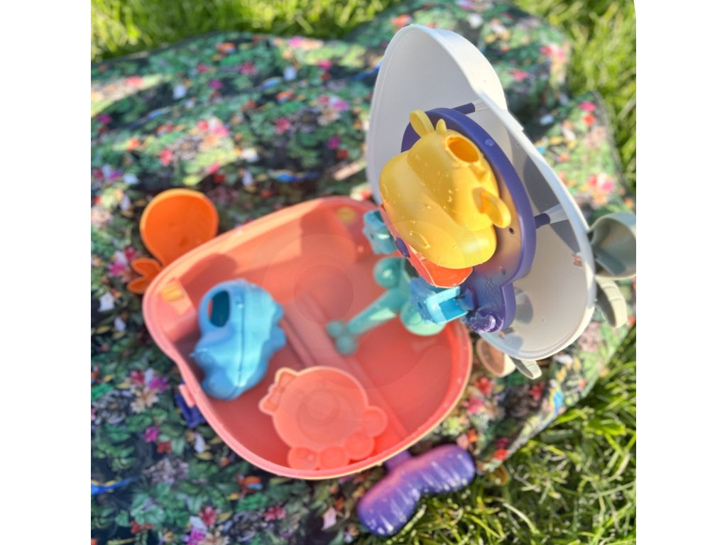 Súprava na hranie s pieskom a vodouod značky WOOPIEuspokojí všetky vaše potreby na cestách, pri hre na pieskovisku a na pláži! Súprava3w1 - všetko je zabalené vkuforktorá zahŕňapieskové príslušenstvo ihračka do vody. Jednoducho položte puzdro na chrbát, naplňte spodnú časť vodou a vďaka poháriku nalejte vodu do hlavy a sledujte, ako voda steká dolu. Takáto zábavarozvíja zmysly dieťa azameriava sa na jehopozor. Príslušenstvo umožňuje kompletnú hru s pieskom, dokonca ajdva! Táto hračka spĺňa všetky potreby na hranie vonku!