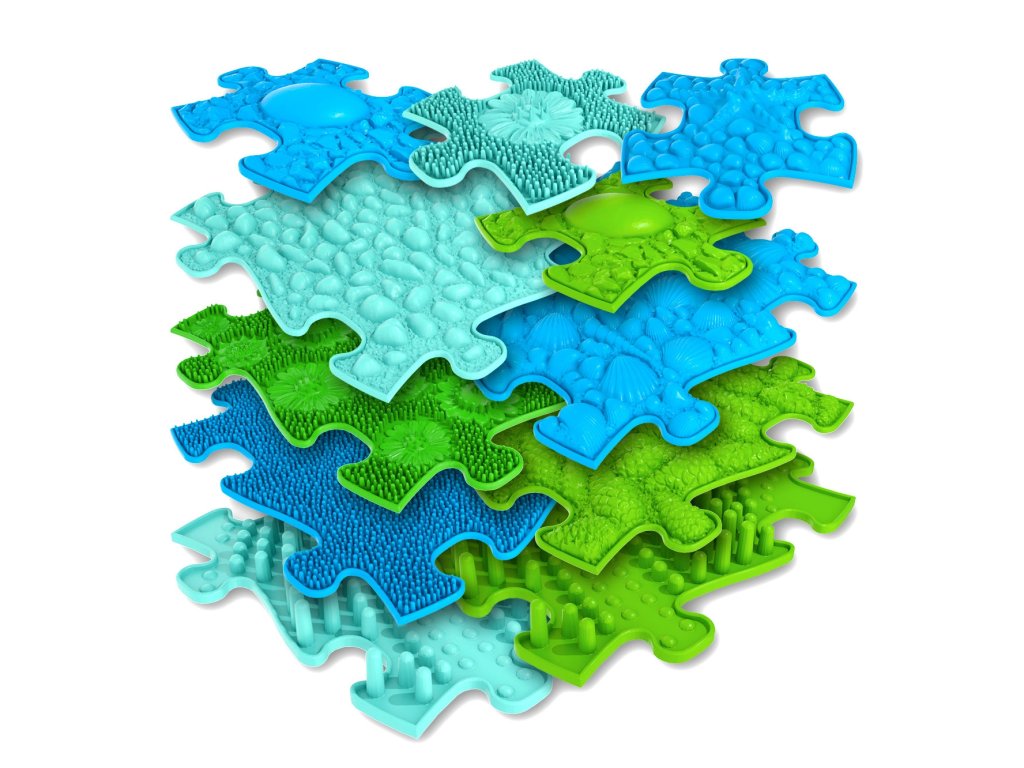 WOOPIE Senzorická ortopedická podložka na puzzle 11 ks - Farba modrá/zelená