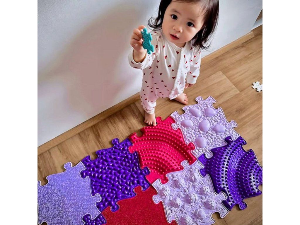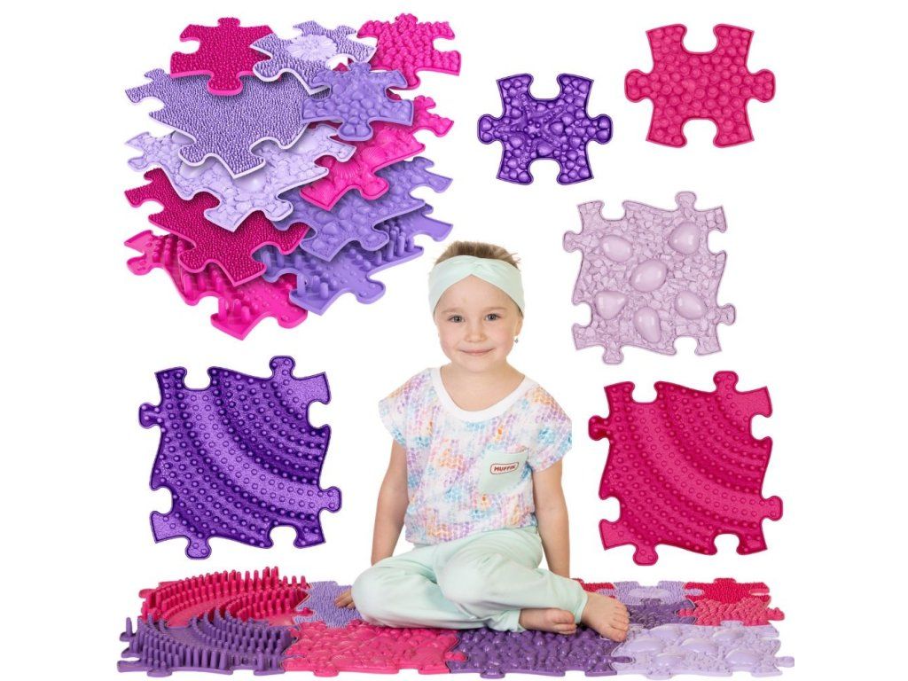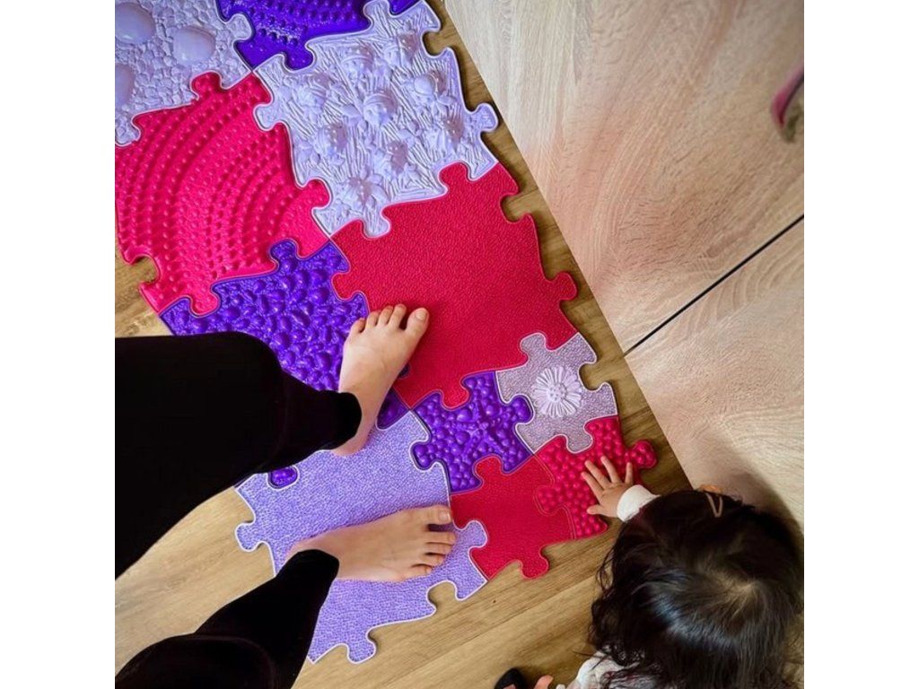 WOOPIE Senzorická ortopedická podložka na puzzle 11 ks - Farba ružová/fialová