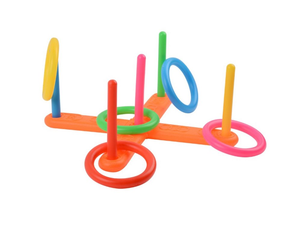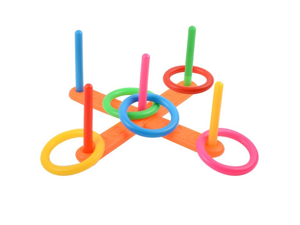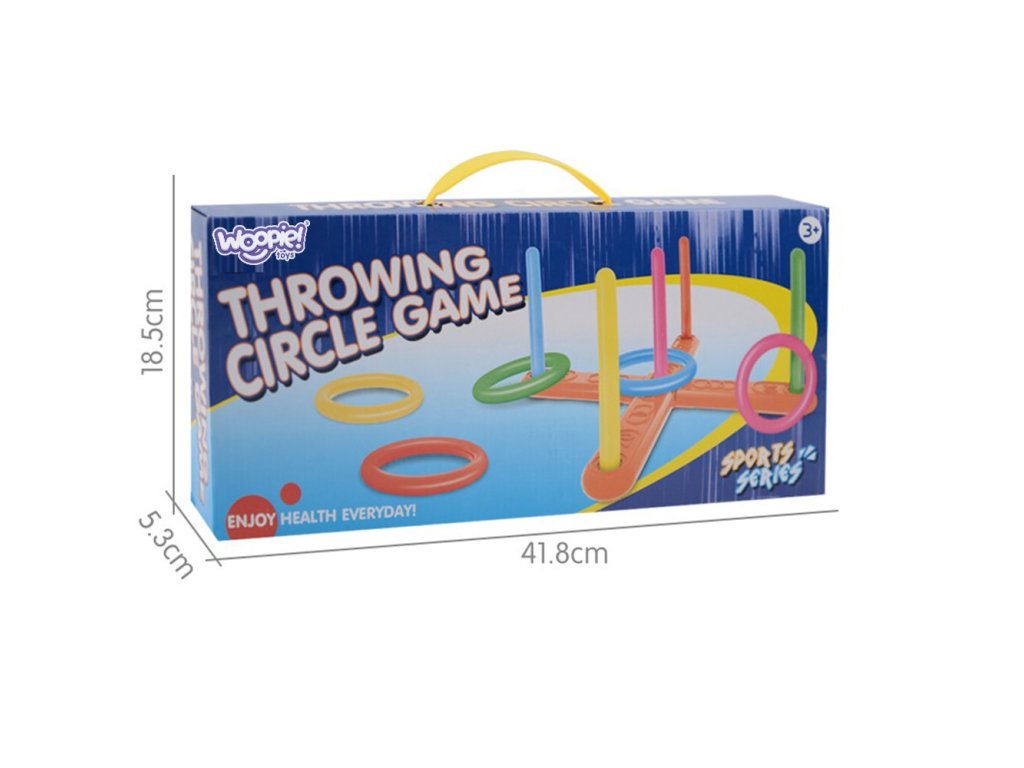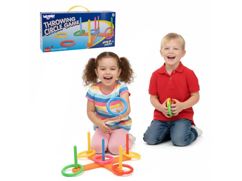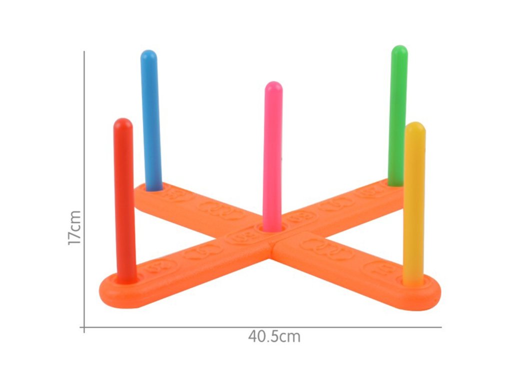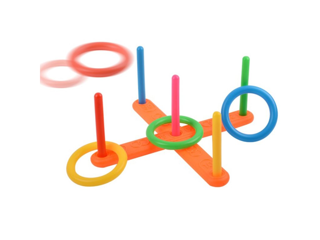 - Obsah súpravy: 5 hádzacích kruhov a 5 kolíkov rôznych farieb.