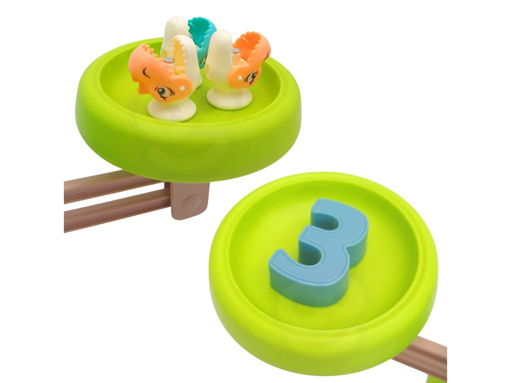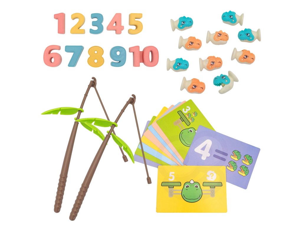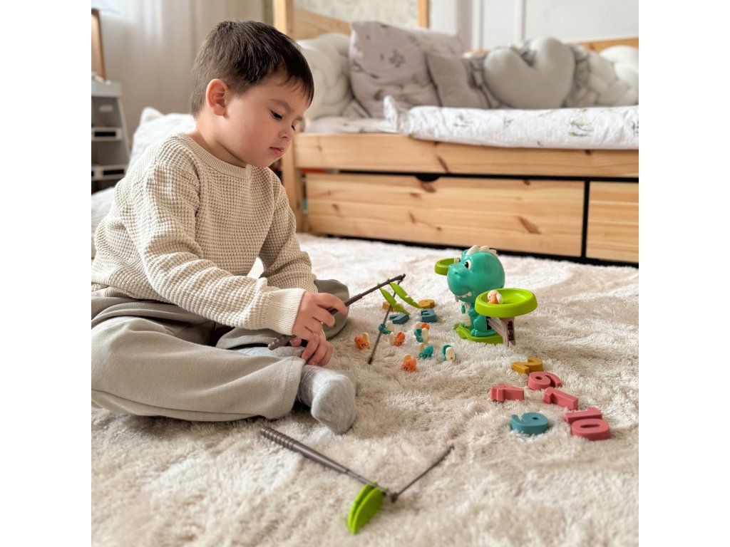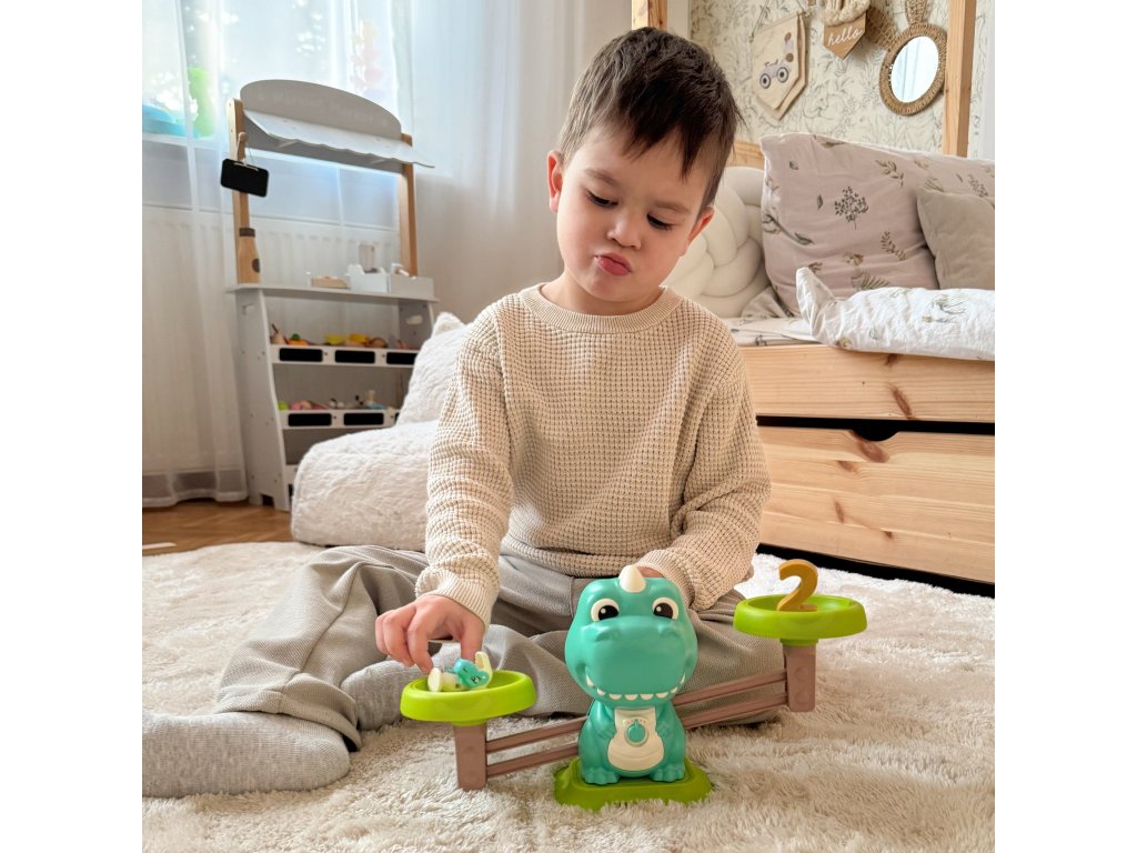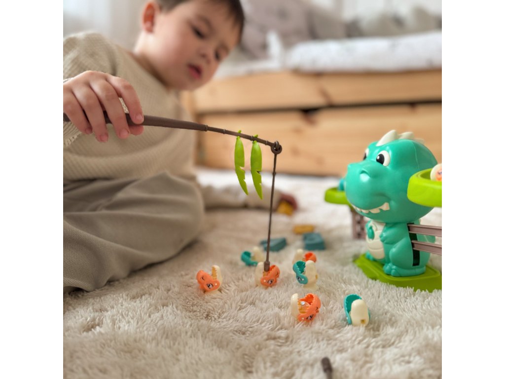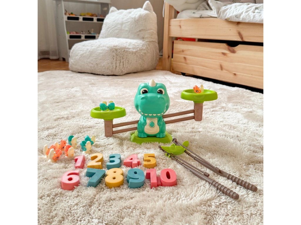 Dinosaurus s kladinou od značkyWOOPIEpodporí poznávanie sveta, čísel a matematických operácií, s prestávkou na lov dinosaurov!. Veľký dinosaurus je umiestnený na stojane, kde sa môžeme hrať so šupinami. Za dinosaurom sa nachádza priestor na rybárske prúty, na ktoré môžete pripevniť listy zo súpravy.V súprave je 10 závaží, jedna váha zodpovedá jednému zvieraťu v súbore, t. j. váha 1 zodpovedá jednému dinosaurovi, váha 2 zodpovedá dvom dinosaurom atď. Okrem toho nájdete ajkarty s akciami a odpoveďami. Táto hračka dokonalestimuluje predstavivosťpodporuje tvorivé a nekonvenčné myslenie, rozvíja manuálne zručnosti tých najmenších a je zábavná.
