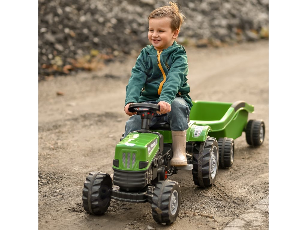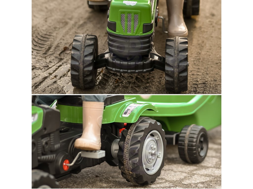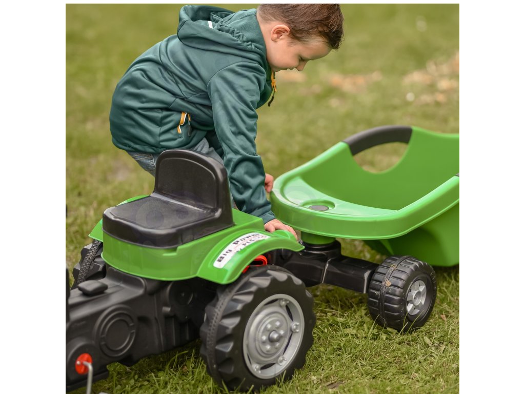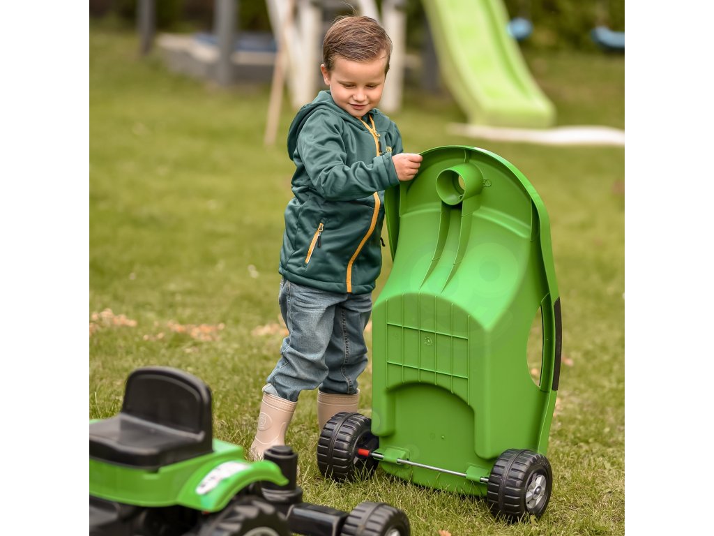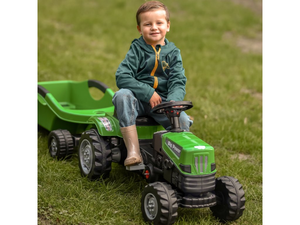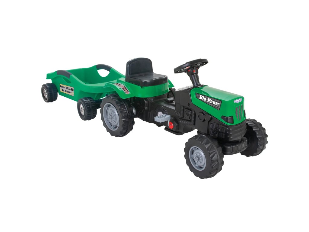 Zelený pedálový traktor Big Power s prívesom Umožní vám posunúť hru vášho malého farmára na vyššiu úroveň. Vyrobené zodolný plast a vybavená praktickým prívesom sa určite stane obľúbenou hračkou každého dieťaťa. Toto krásne navrhnuté vozidlo má nastaviteľné sedadlo, ktoré zaručuje pohodlnú jazdu pre každé dieťatko.