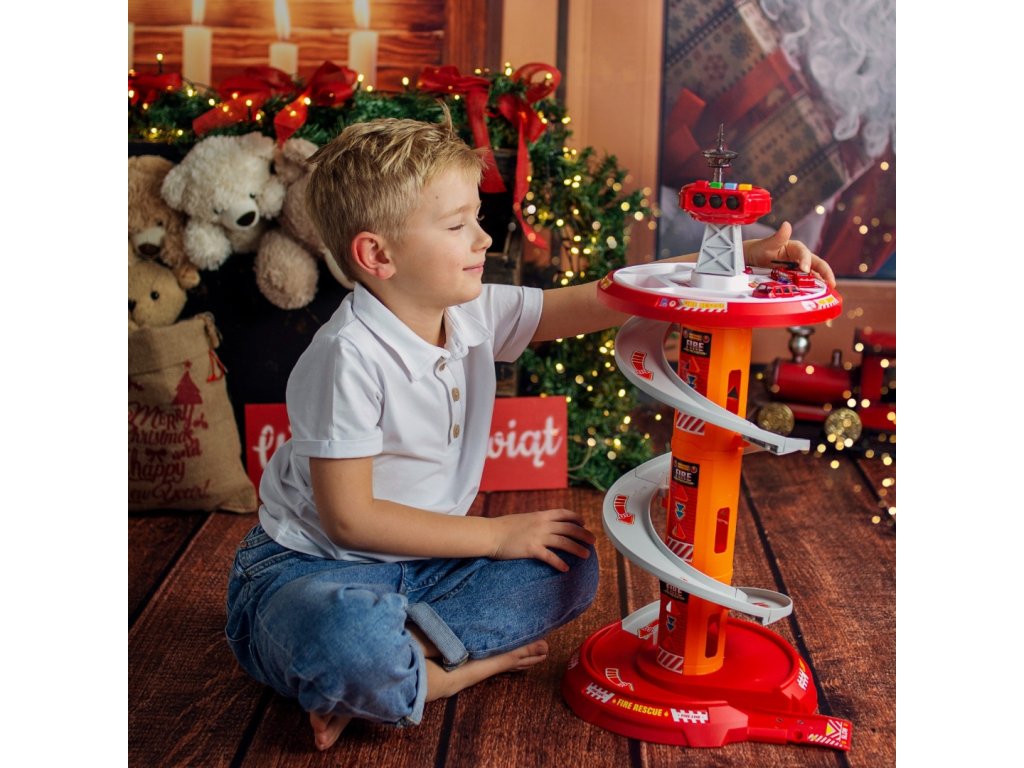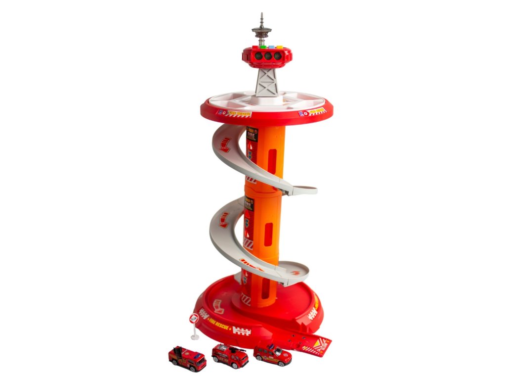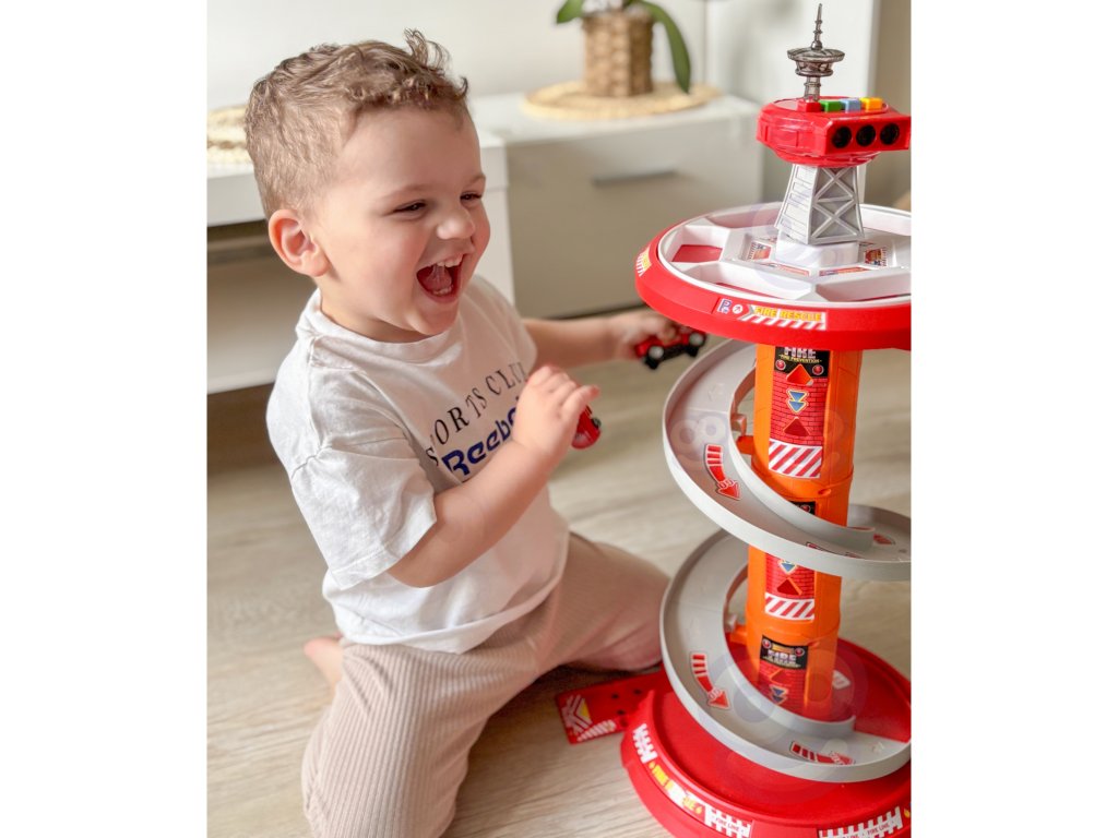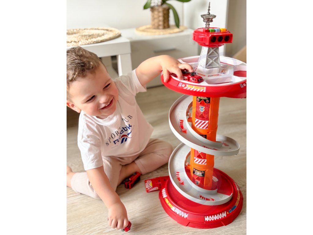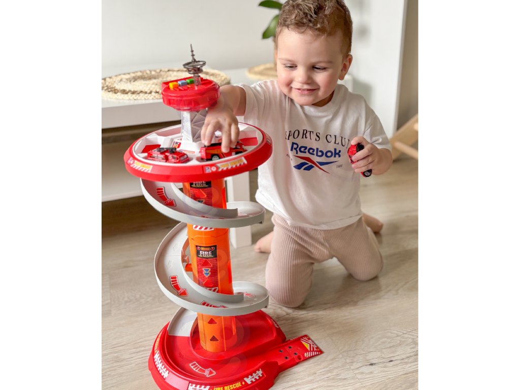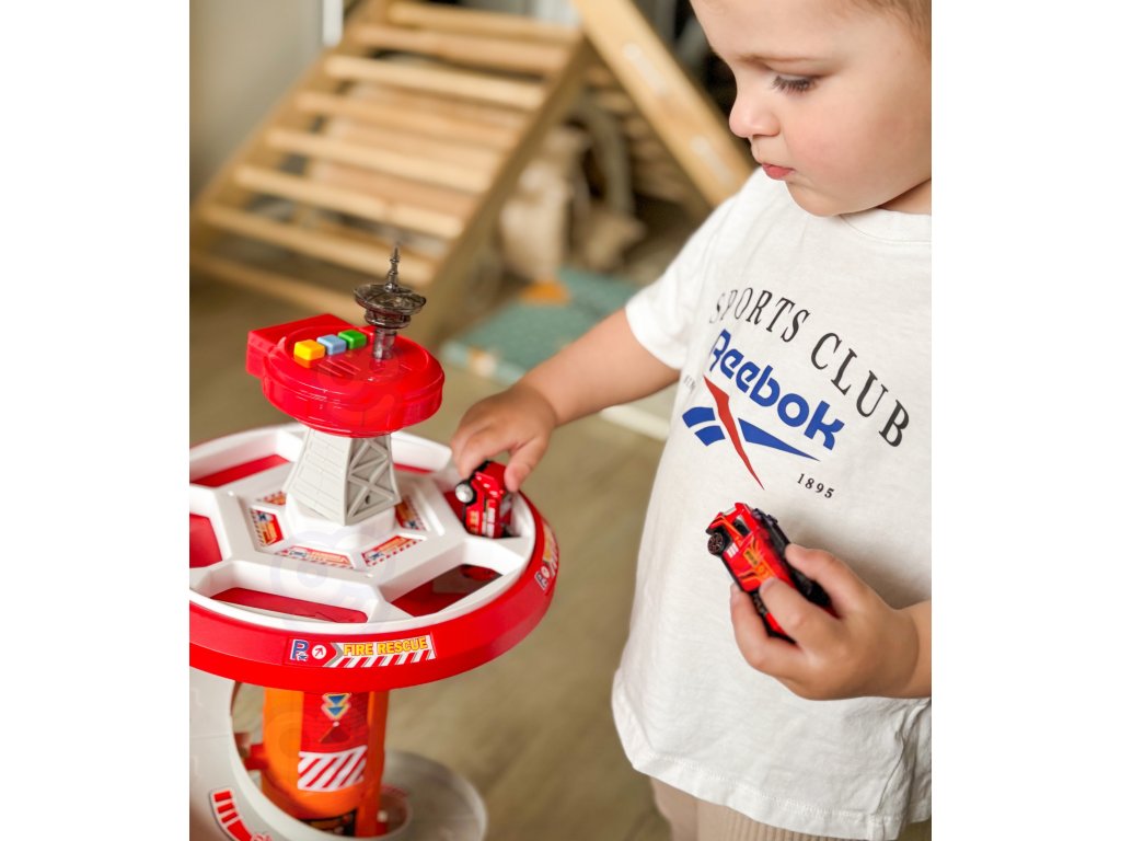 Senzačnéviacpodlažná garáž preHasičský zbor od spoločnostiWoopie určite poteší vaše dieťa. Táto hračka podnieti predstavivosť každého fanúšikauniformované služby ktorá po opustení parkoviska vstupuje dosprievodná cesta.Rýchly zostup automobilu z jednotlivých úrovníumožňuje špeciálny zostup s navíjaním. Okrem toho súprava obsahuje3 rôzne hasičské vozidlá.