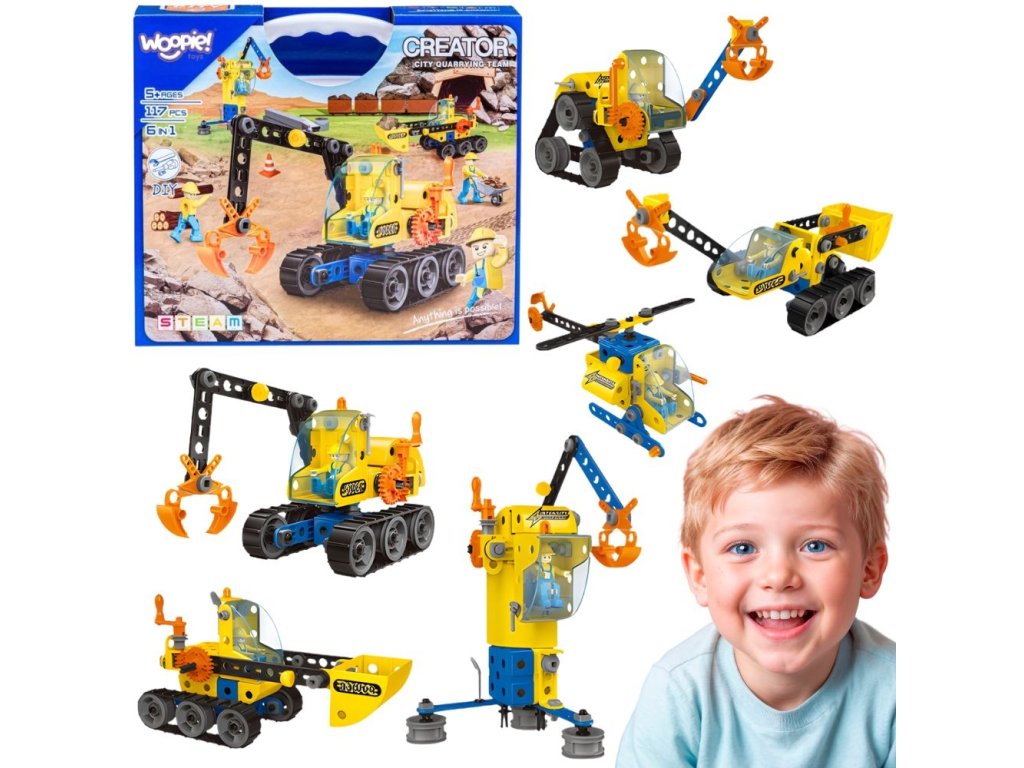 Postavte si vlastné vozidlá a stavebné stroje s touto sériouCREATOR City Engieering od značkyWoopie Táto stavebnica typuUROB SI SÁM je ideálny pre malých konštruktérov a nadšencov do stavania. Vďaka prvkomSTEAM dieťa si rozvíja kreativitu, logické myslenie a manuálne zručnosti. Jednu sadu možno použiť na vytvorenie až6 rôznych modelov - Od helikoptér cez buldozéry až po žeriav s hákom. Je to nielen zábava, ale aj skvelá skúsenosť na učenie a zoznámenie sa so svetom techniky.