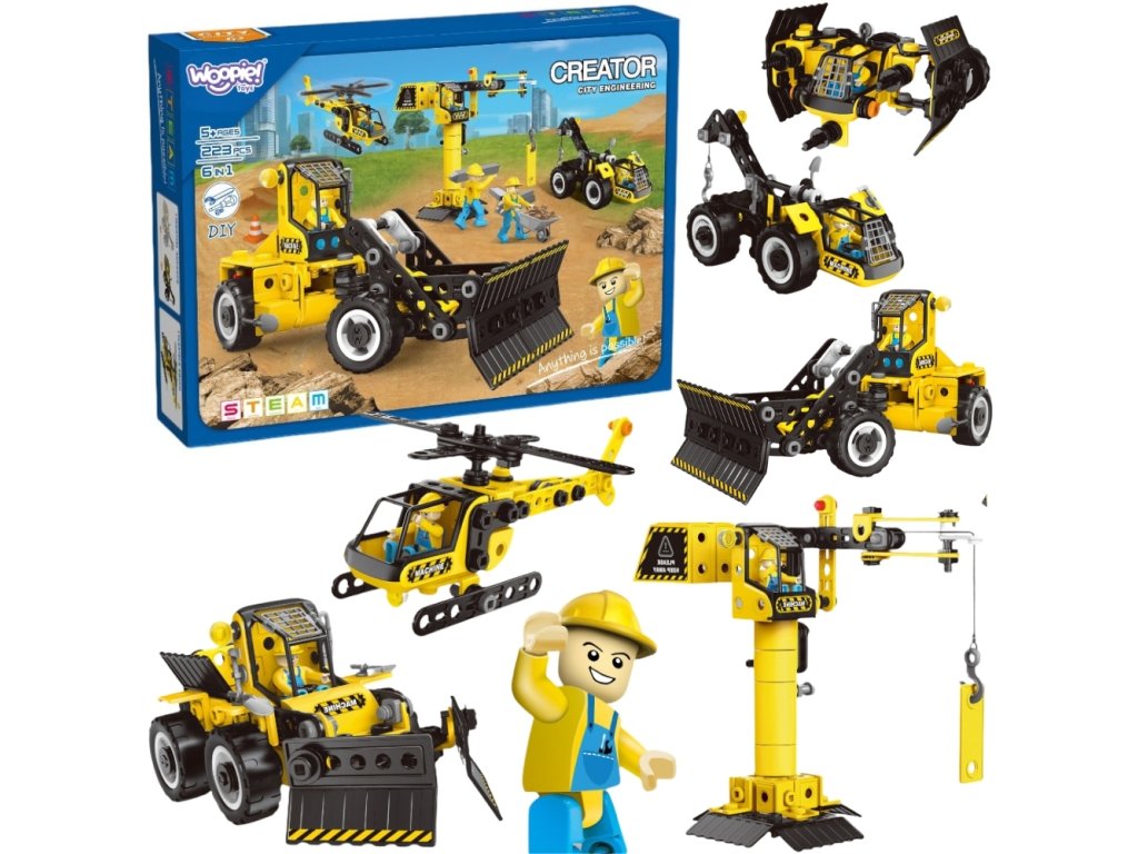 WOOPIE Stavebné bloky Postavte si stavebné vozidlá 8 modelov STEAM