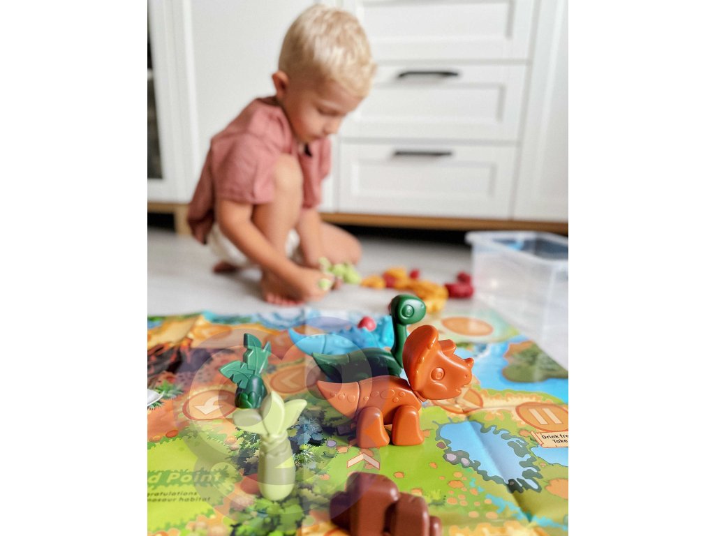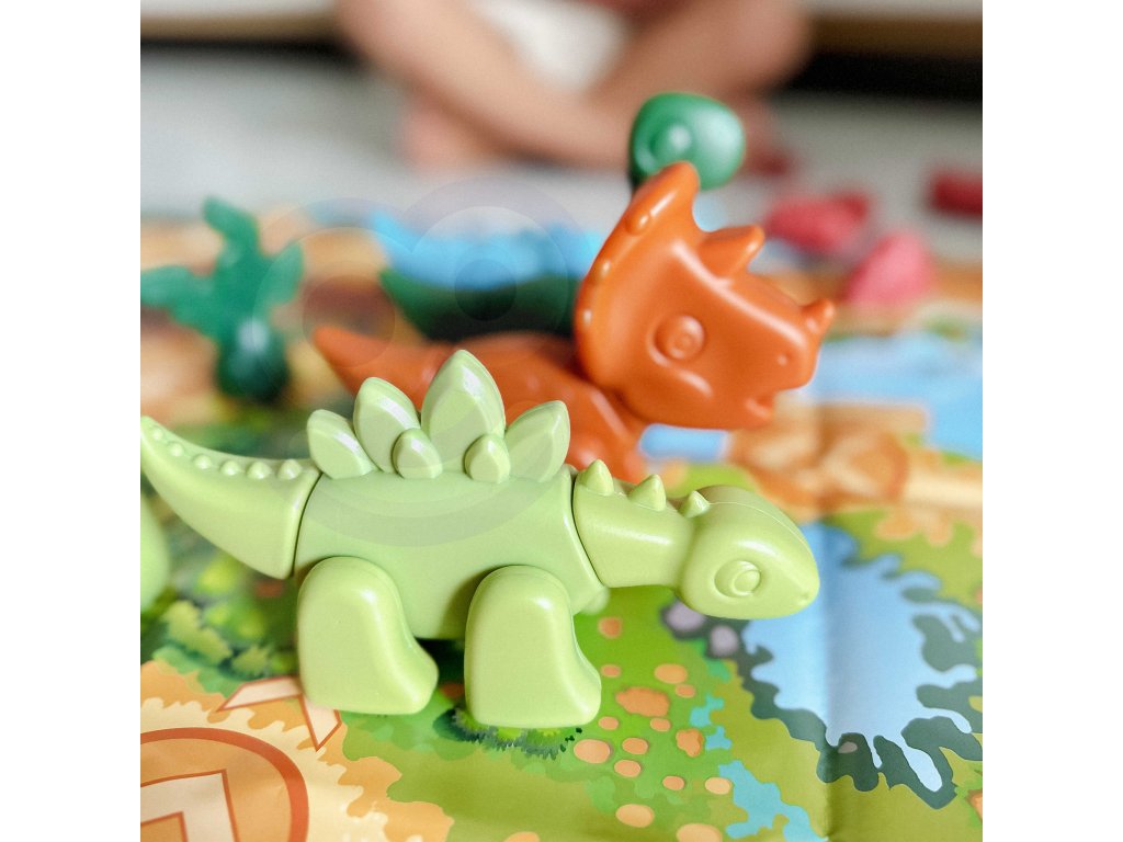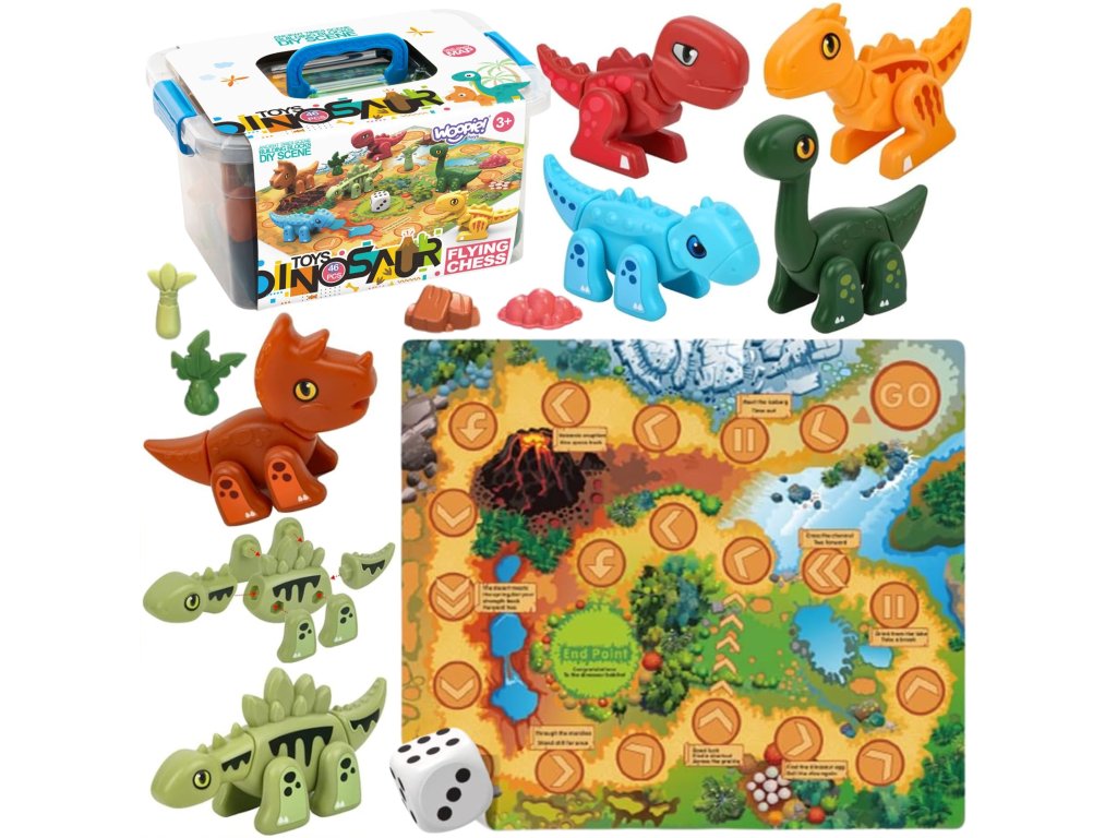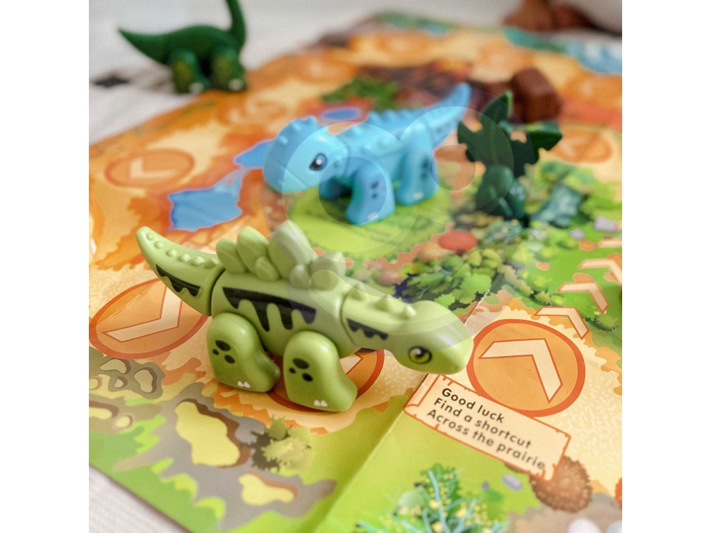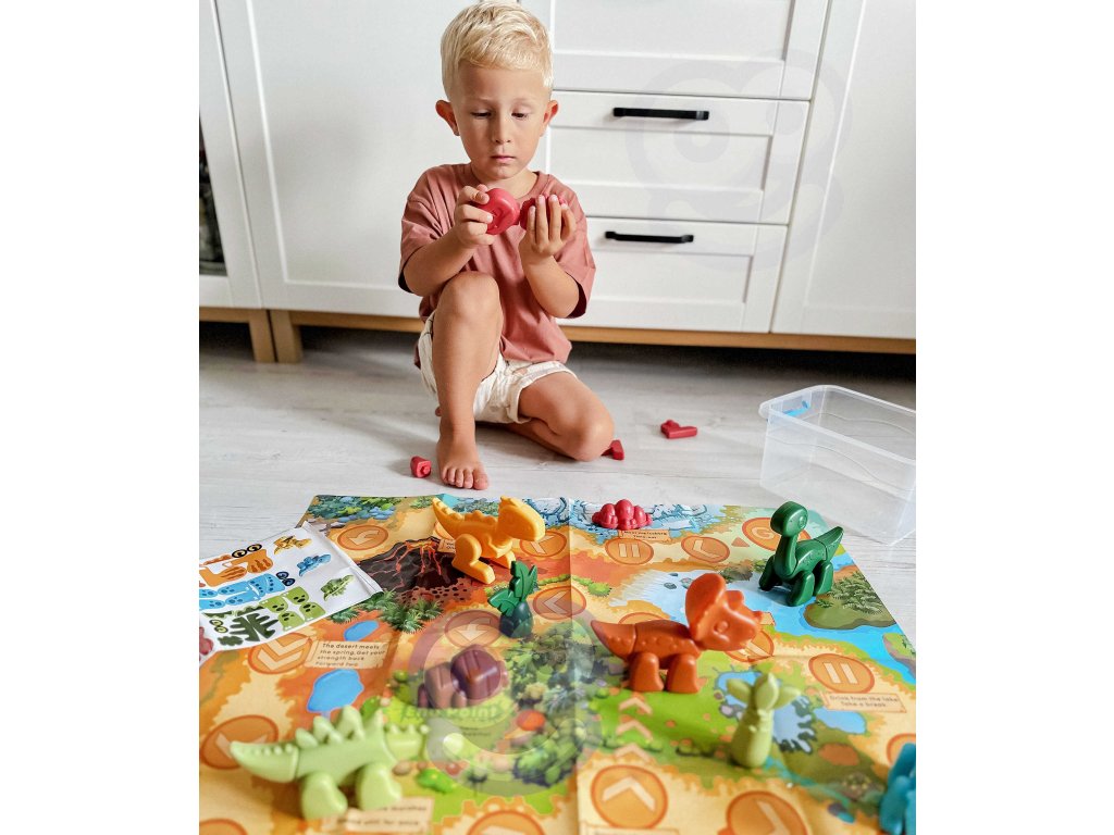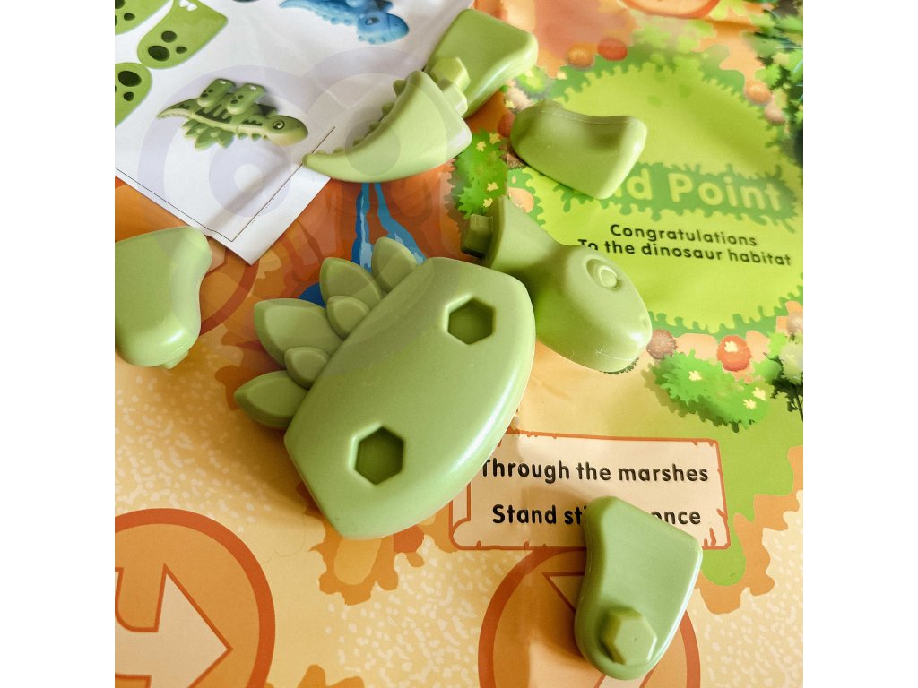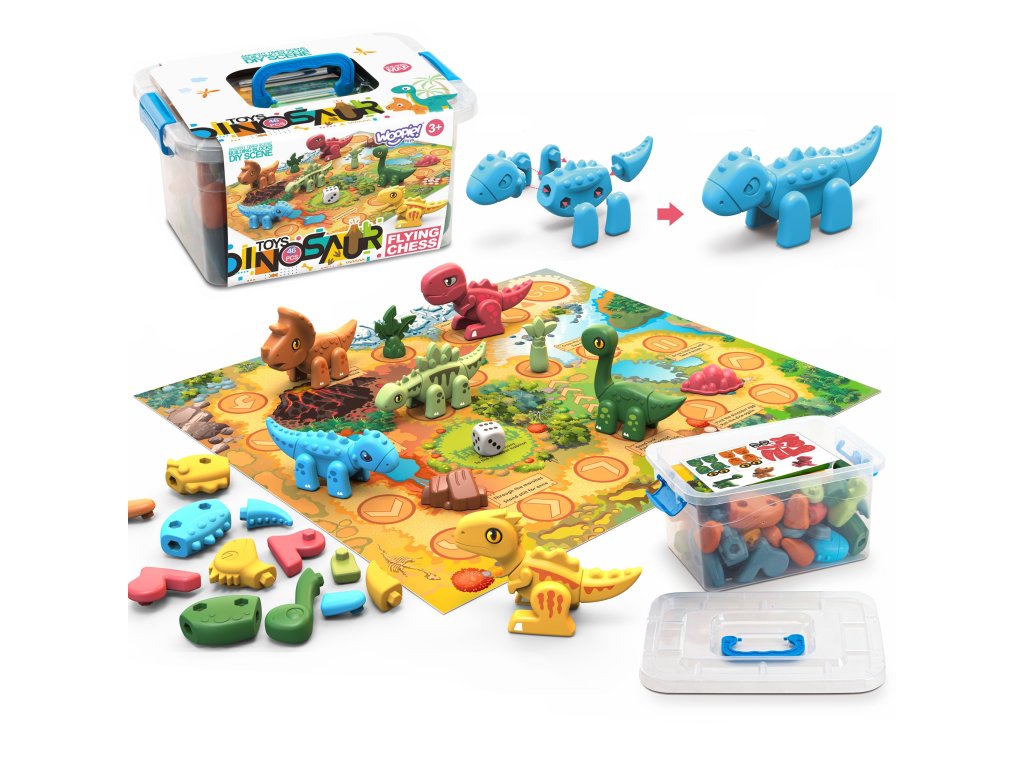 Stavebnica Dinosaurs 2v1 Stolová hraod značkyWOOPIEje ideálna hračka pre malých milovníkov dinosaurov. V krabici nájdete figúrky6 dinosaurov na zostavenie v rôznych farbách.Komponenty sa veľmi ľahko pripájajú stlačením a možno ich tiež pokryť nálepkami zo sady. Deti si tak môžu precvičovať jemnú motoriku, koordináciu oko-ruka a koncentráciu. Okrem skladania a lepenia sada ponúkastolová hra. Príprava hry je veľmi jednoduchá a rýchla: stačí len vytiahnuť hraciu plochu a kocky na už pripravené figúrky. Cieľom hry je cestovať čo najrýchlejšie, pričom hráči sa pohybujú na vzdialenosť zodpovedajúcu počtu hodených kociek. Niektoré z políčok majú špeciálne efekty, ktoré hru spestrujú.