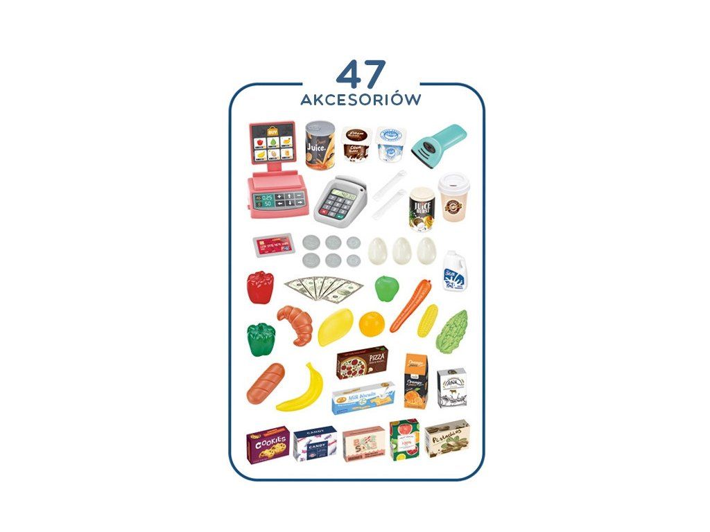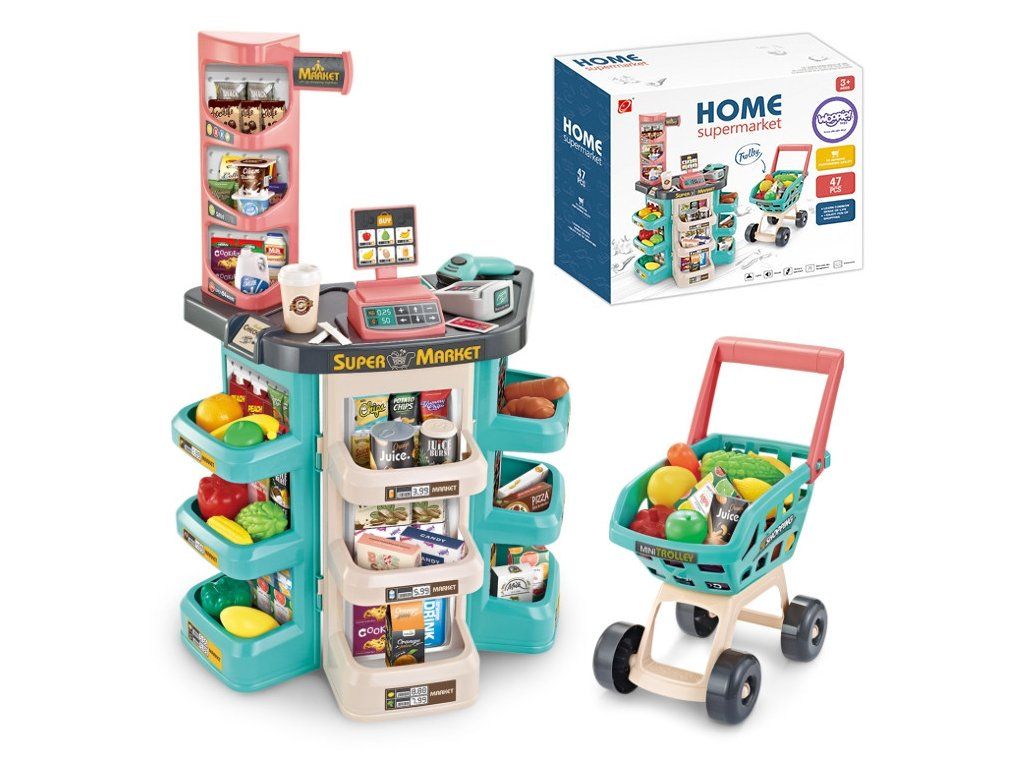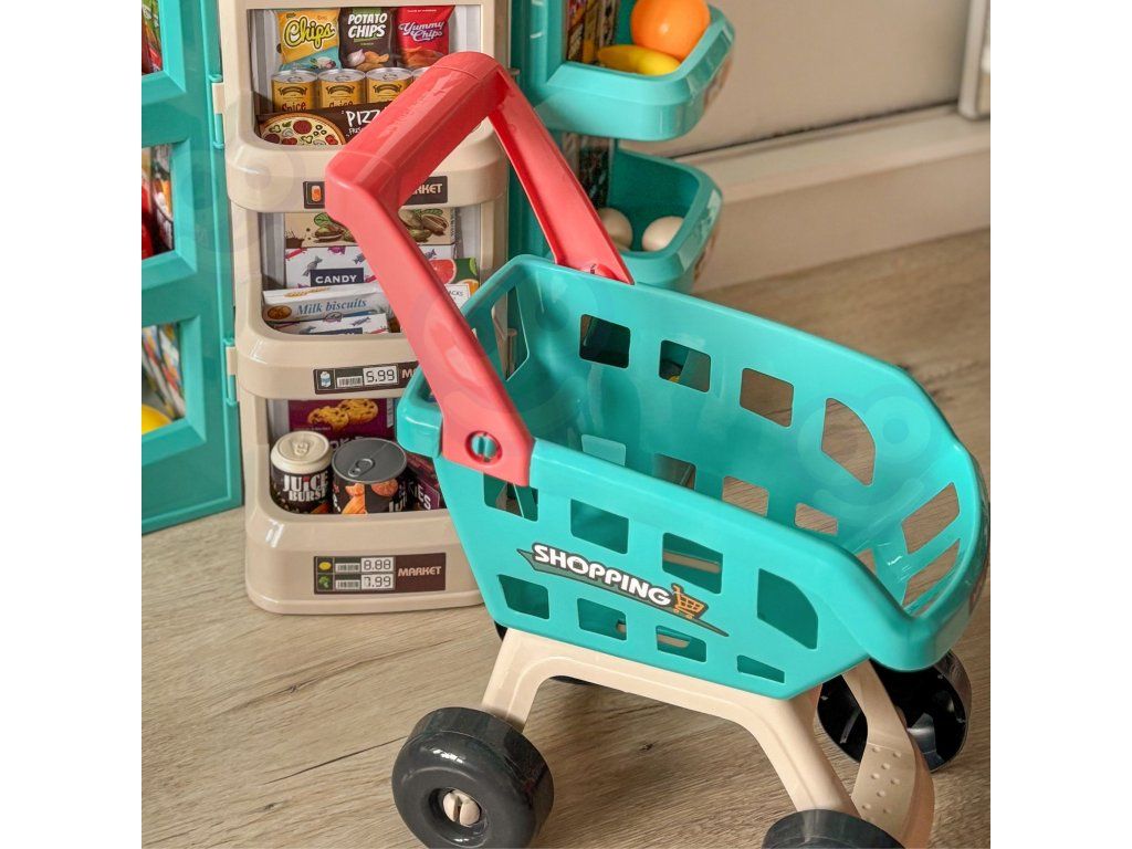 WOOPIE Supermarket Obchod a košík Nákupný košík Pokladňa Skener váhy 47 acc