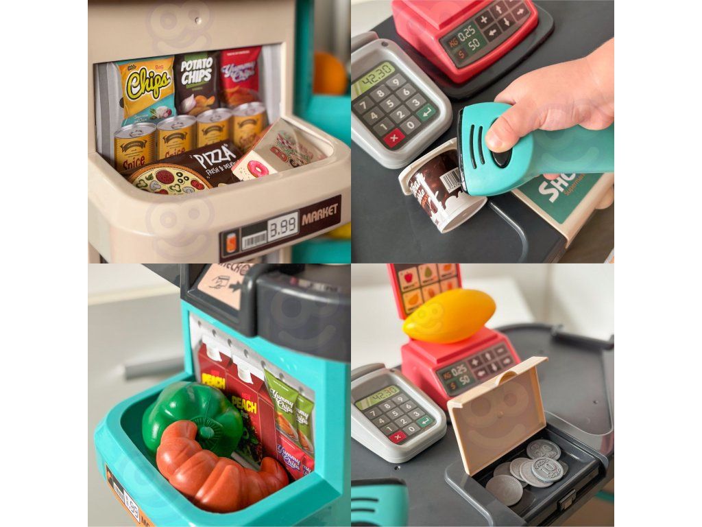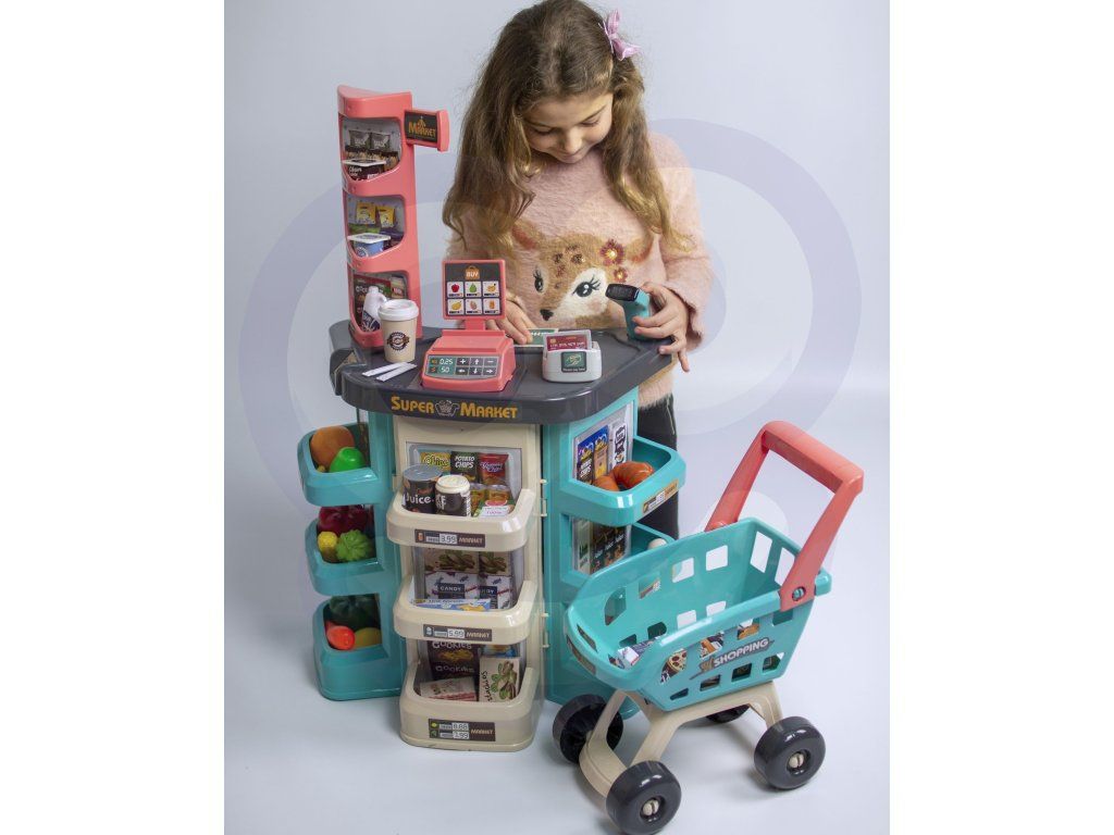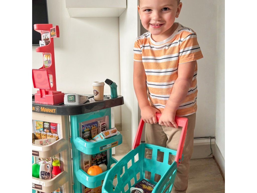 Supermarket s nákupným vozíkom vrátane 47 doplnkov od spoľahlivej značkyWoopie je ideálny pre deti staršie ako 3 roky. Deti rady napodobňujú svojich rodičov, takže táto súprava je ideálna na to, aby ich formou fantastickej hry preniesla do sveta dospelých povinností. Hranie rolí je mimoriadnerozvíja predstavivosť a tvorivosť pre každé dieťa. Obchod obsahuje všetky potrebné veci pre komplexnú pracovňu malého kupujúceho vrátane:pokladňa s váhou, skenerom a čítačkou kariet. Pripojenénákupný vozík umožňuje hrať spoločne s priateľmi kdekoľvek. S takouto kompletnou sadou bude vaše dieťa vždy vedieť, ako sa správne správať v skutočnom supermarkete!