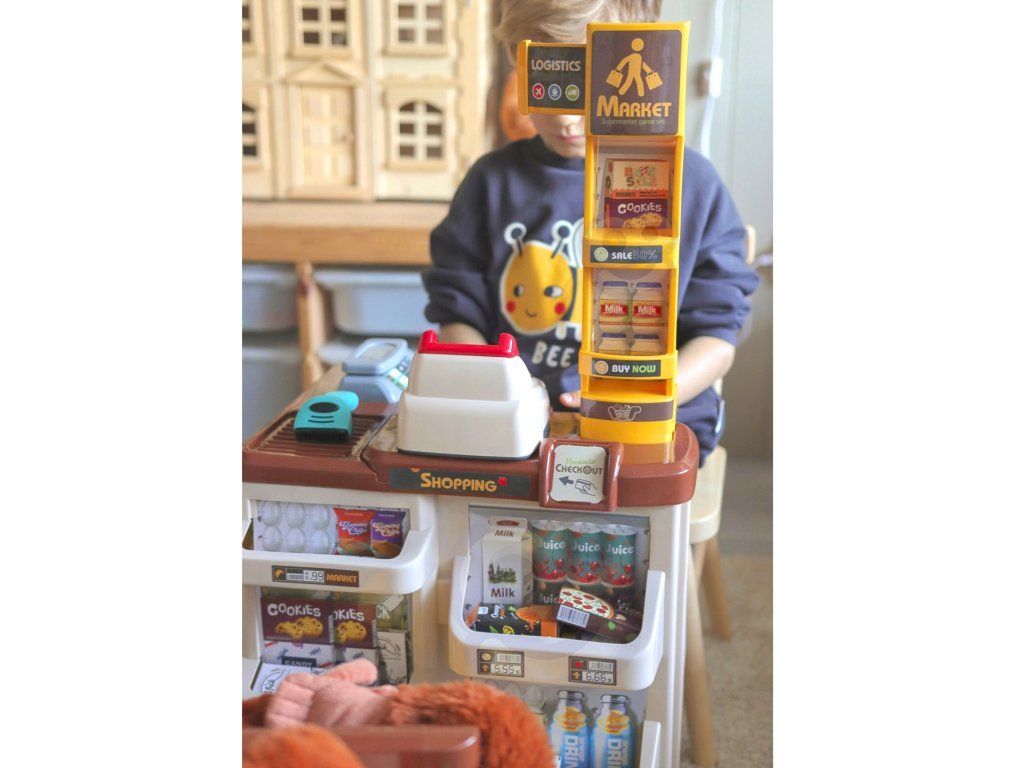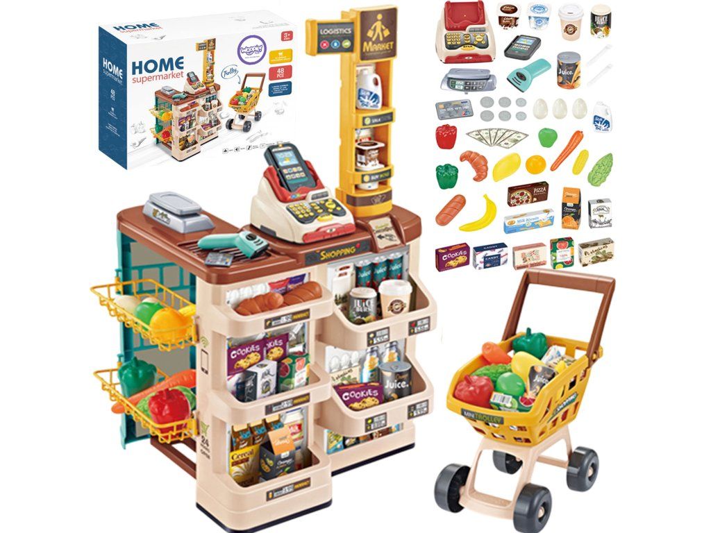 Komplexne vybavenésupermarket s nákupným vozíkom je ideálna súprava na kreatívnu hru v obchode. Deti rady napodobňujú každodenné činnosti dospelých a táto viacdielna súprava vám umožní vytvoriť si doma realistický nákupný stánok. Stánok bol navrhnutý s dôrazom na detail a zmestí sa doň všetok potrebný sortiment, čím poskytuje veľa zábavy. Multifunkčná súprava sa skladá až zo 48 prvkov. Je vybavená priestrannými policami na výrobky,stupnica hračiek, otvoreniepokladňa a presne reprodukovaný skener produktu. Vozík na kolieskach, ktorý je súčasťou sady, umožňuje malým zákazníkom nakupovať pohodlne. Ide o ideálnu hračku, ktorá sa výborne hodí na samostatnú hru, ako aj na zapojenie súrodencov alebo rodičov.